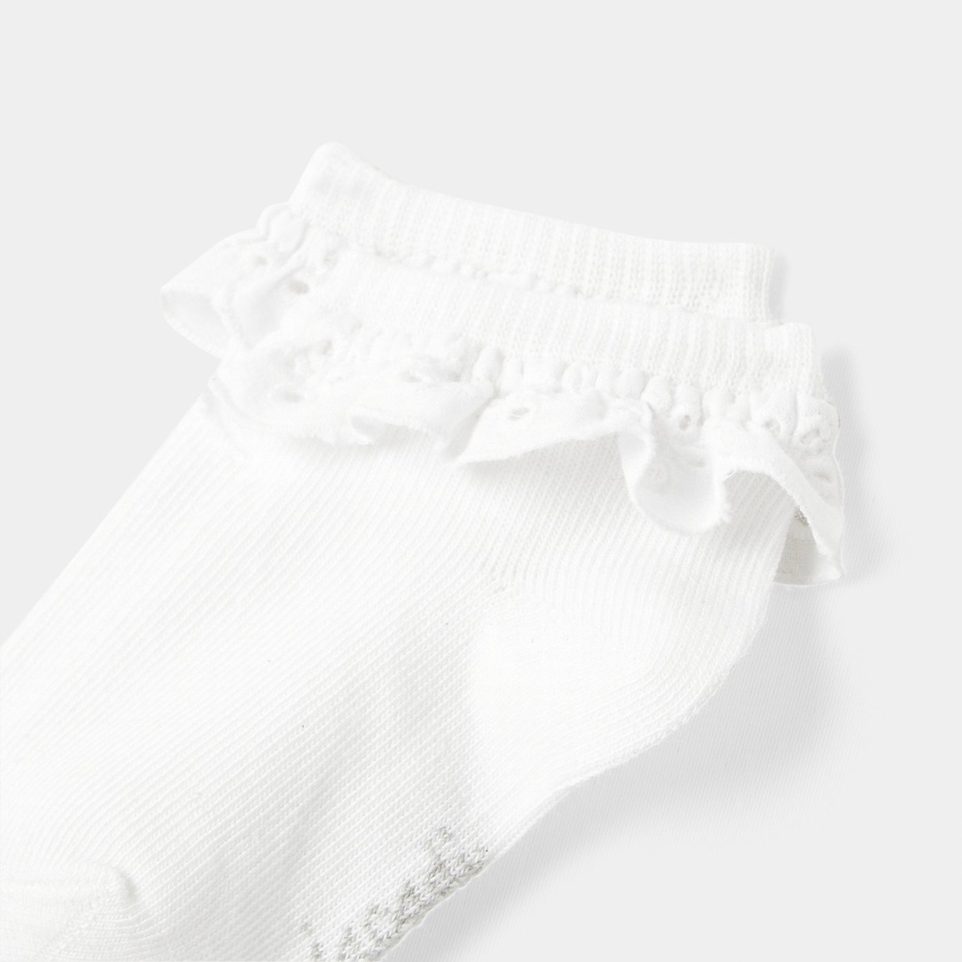 Adorned with a ruffled yoke in English embroidery, these baby girl socks will finish off any outfit with elegance. Made from soft, supple organic cotton, you will be able to match them with formal dresses and t-bar shoes. - Organic cotton - Ruffled yoke in English embroidery