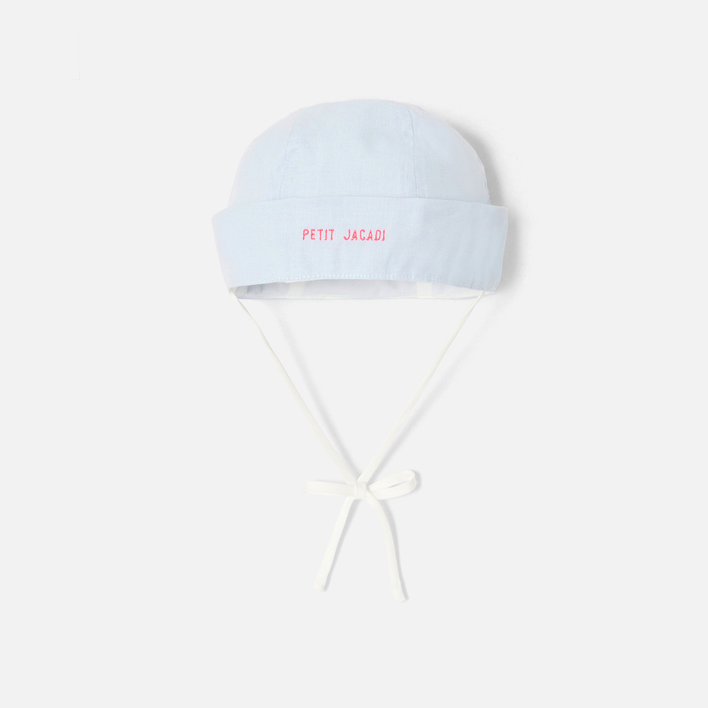 A summer wardrobe essential, this baby boy hat takes the form of a sailor hat for the occasion. In Oxford cotton , neon embroidery and cotton voile lining complete this model with authentic charm.- Organic cotton baby hat- Cotton voile lining- Fluorescent embroidery- Ties - Birth gift idea to offer or to treat yourself.