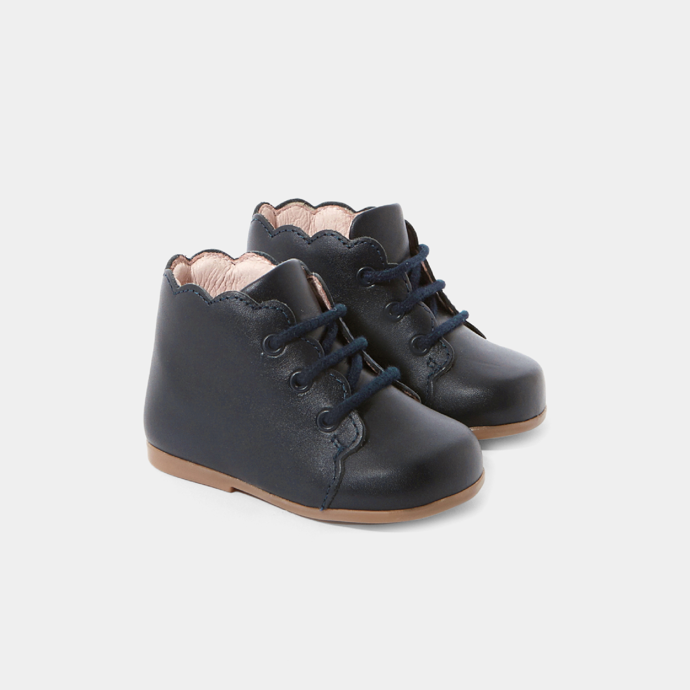 Help your little girl learn to walk with these elegant booties. Perfect for discovering the world around her, they are enhanced with lovely scalloped details for a touch of modern flair.Featuring laces for a secure fit, they'll finish off her formal outfits and everyday wear with style. - Smooth leather - Cushioned tongue, ankle, and insole - Lace-up closure for a secure fit at the ankle - Made in Portugal - True to size