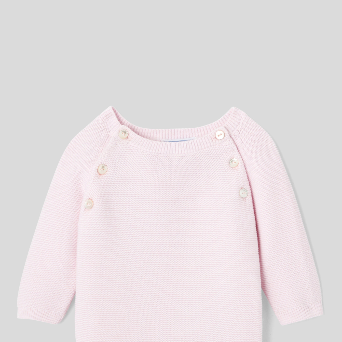 An emblematic model in the Jacadi baby set, this baby girl jumpsuit will protect the little one from the very first days thanks to its soft organic cotton knit. To give and to pass on, this timelessly charming piece will find its place in her first wardrobe. - Baby girl jumpsuit in organic cotton - Side opening with natural mother-of-pearl buttons - Invisible press studs at crotch - Lovely birth gift idea to give or to treat yourself.
