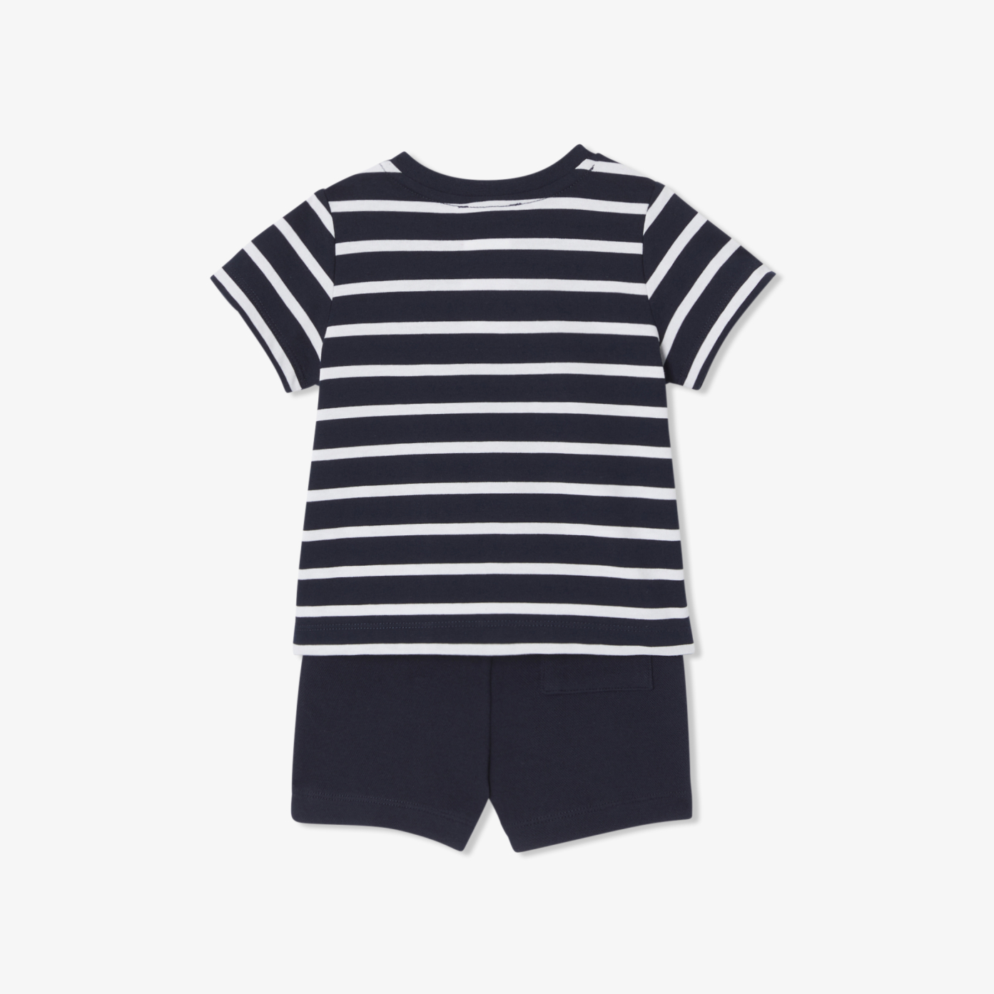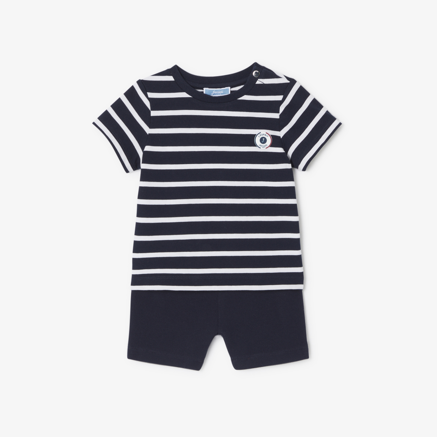 This baby boy set has a very French charm, announcing a chic casual summer. Made from organic cotton, the sailor-style t-shirt and elasticated shorts will keep your little boy comfortable all the way back to school.-Organic cotton baby boy set-Short-sleeved t-shirt-Snaps at shoulder-Badge Jacadi on bib-Shorts with elasticated waistband