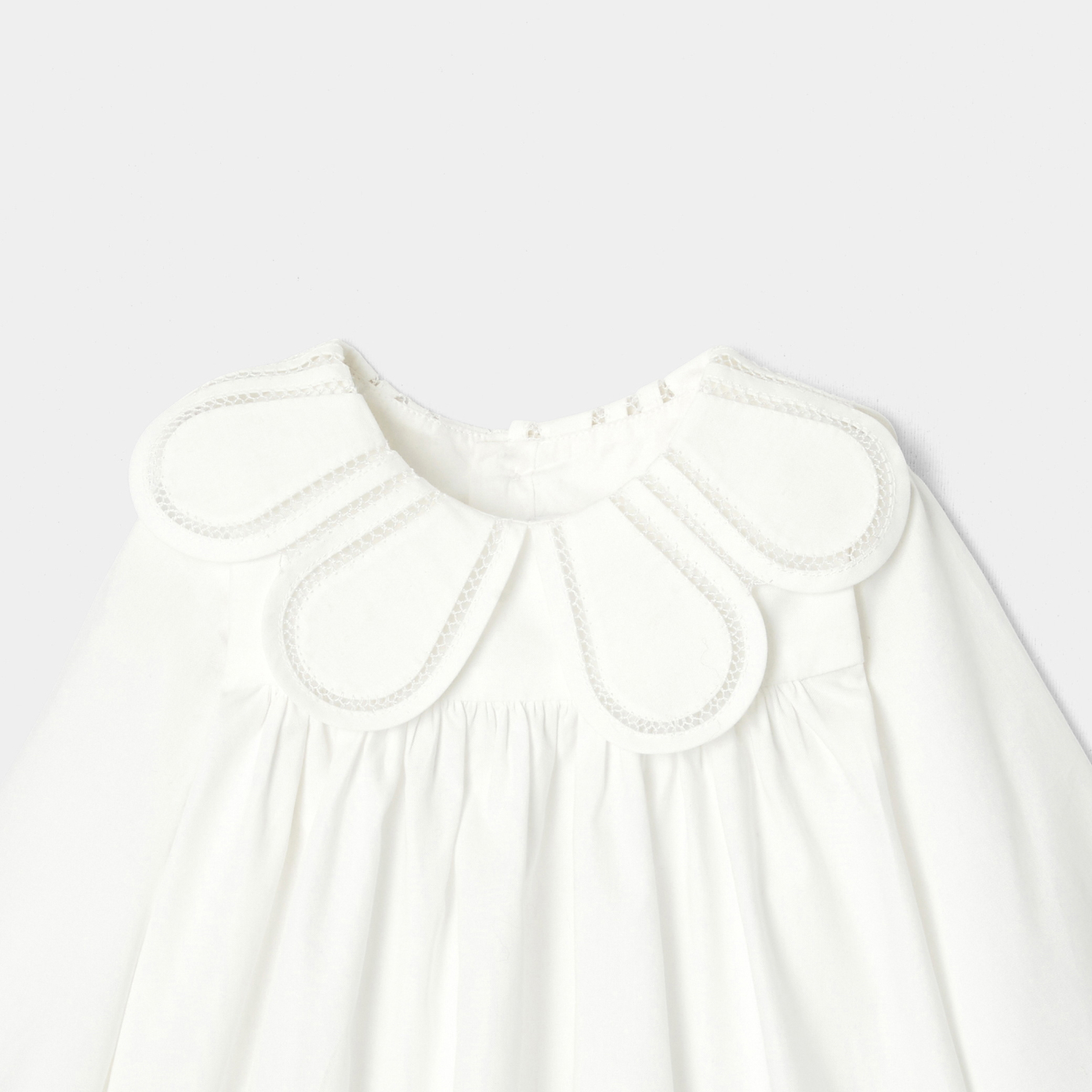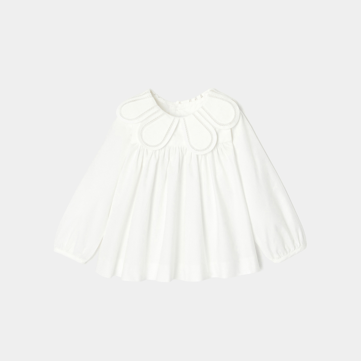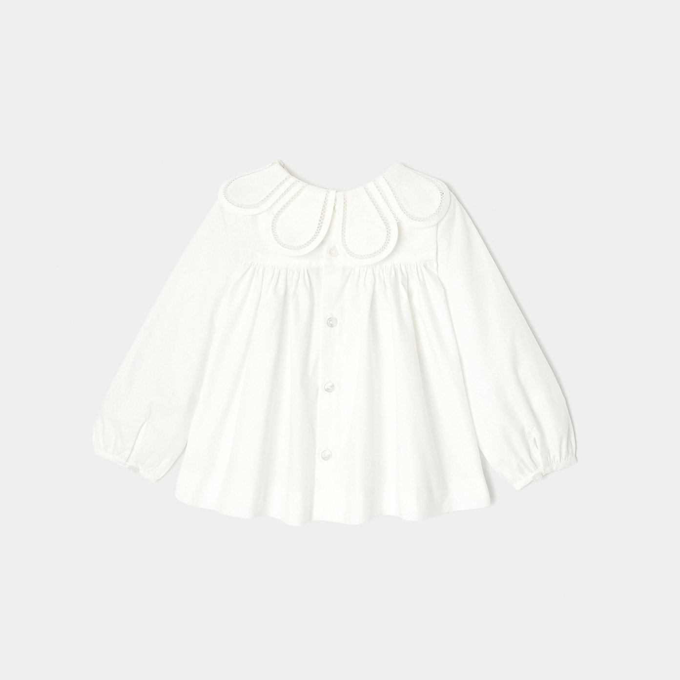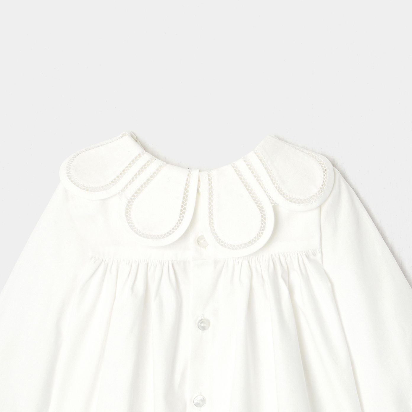 An ode to beautiful fashion, this baby girl blouse radiates French style. Crafted in elegant Oxford cotton, the wide petal collar, pleated cut-out and elasticated sleeves complete this chic model, designed for formal wear.- Oxford cotton- Petal collar- Pleated cut-out on front- Tightened cuffs- Buttoned back opening