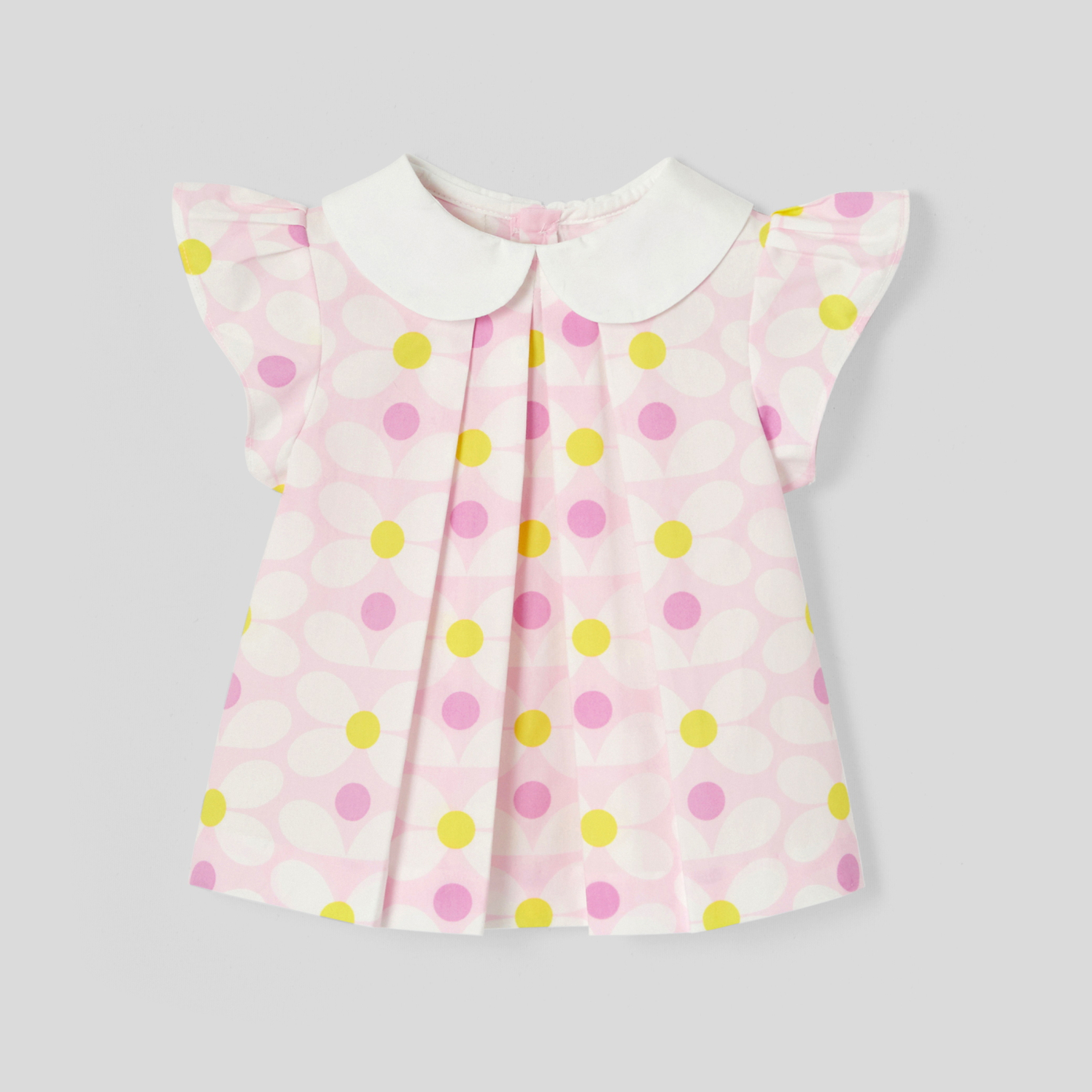 In soft, lightweight organic cotton, oversized flowers and a Peter Pan collar bring a modern dimension to this baby girl blouse. Worn over scalloped shorts with a bonnet, gift it for spring.- 100% organic cotton- Poplin Peter Pan collar- Goblet sleeves- Hollow pleat front- Button back opening