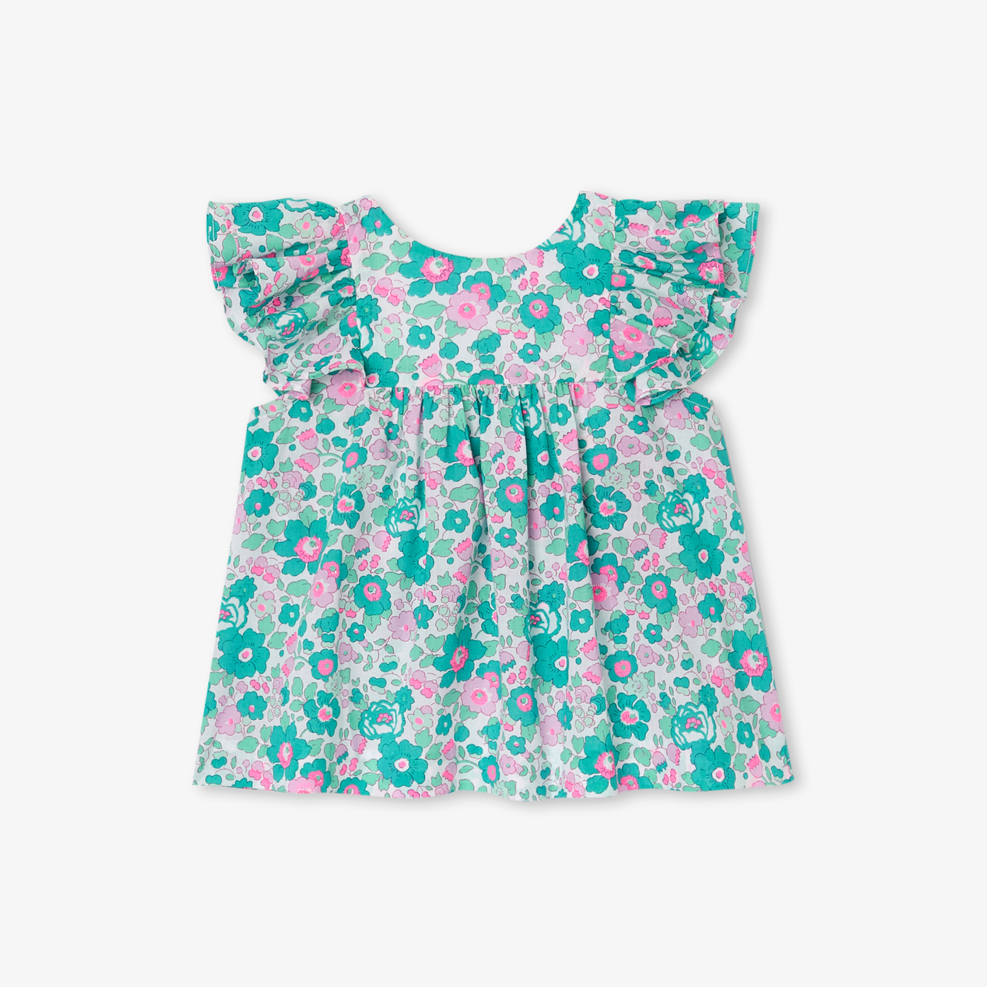 Carefully cut and detailed, this baby girl blouse in Liberty fabric seduces with its elegant casualness. With ruffled sleeves, a square front and gathered cutouts, worn with shorts and sandals, it will accompany your little girl all the way back to school.-Baby girl blouse in cotton-Ruffled sleeves-Rucked cutouts at front and back-Buttoned opening at back-Liberty Betsy fabric, exclusive Jacadi colouring