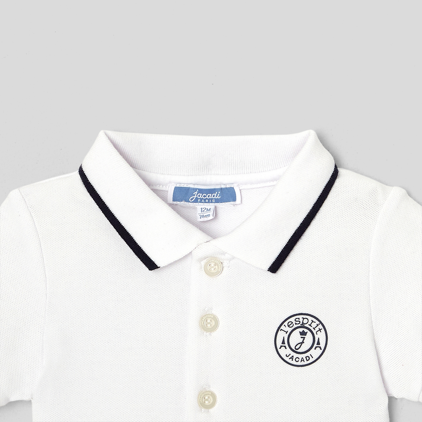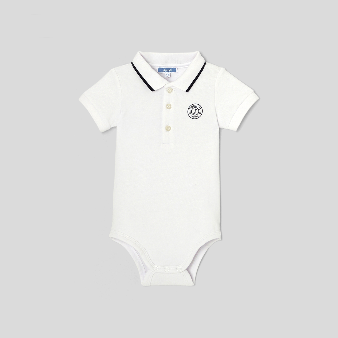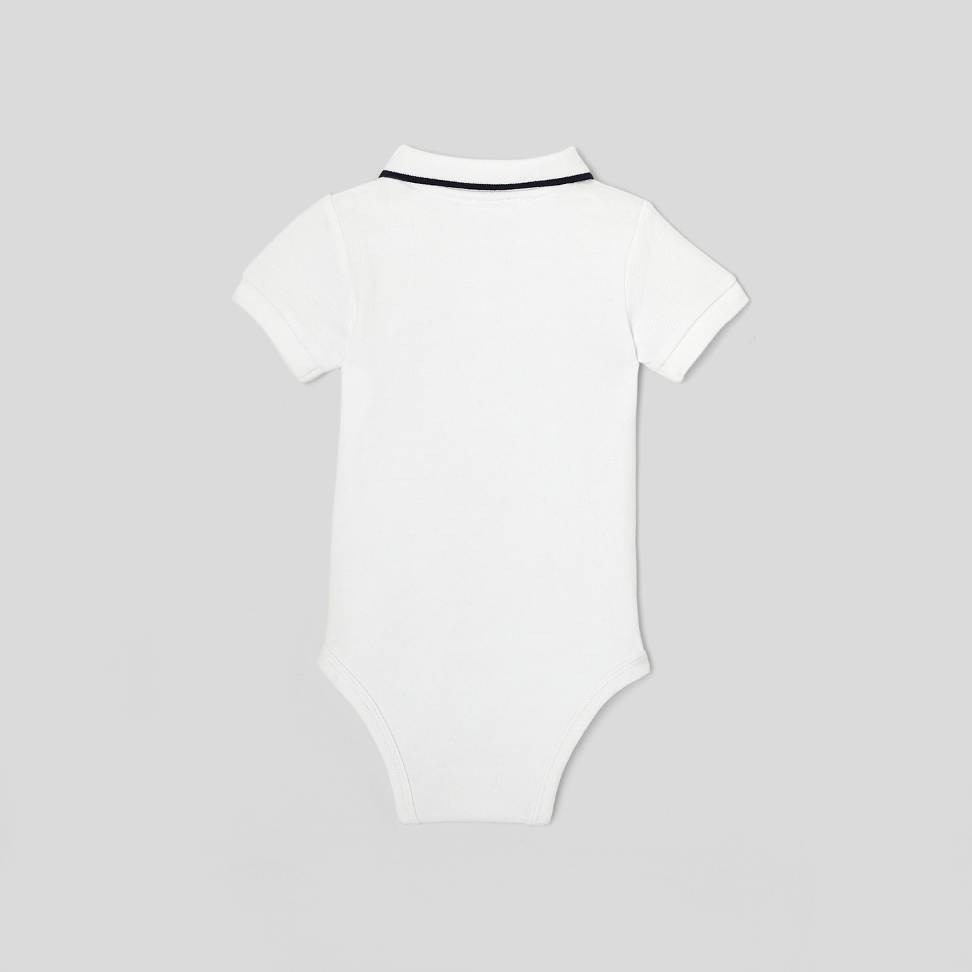The essential baby boy bodysuit opts for a sporty chic look with its polo cut. Wear with colourful shorts or paired with rolled-up jeans and trainers, this elegant, versatile essential comes in soft, supple cotton piqué.- Baby boy bodysuit in organic cotton piqué- Button placket at neckline- Snap opening at crotch
