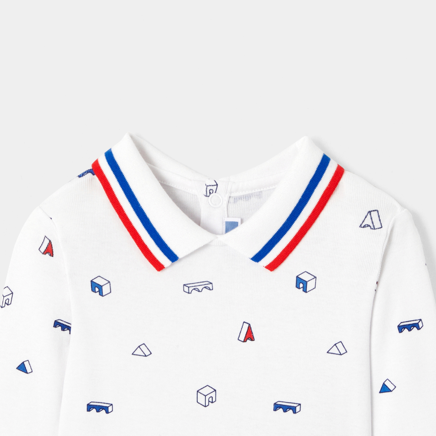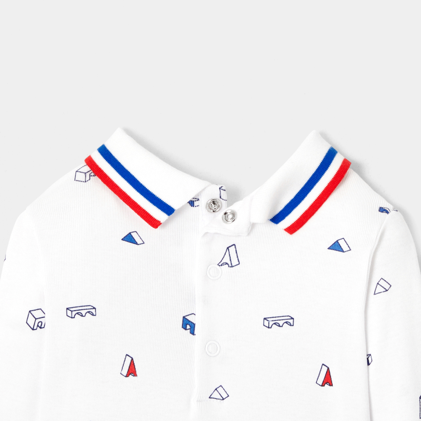 The polo shirt s a must-have in the back-to-school wardrobe and takes the form of a baby boy bodysuit for a comfortable season. Sport chic and practical, it is animated by the most emblematic monuments of the capital. Slip it under dungarees for a silhouette full of Parisian charm.- 100% organic cotton baby boy bodysuit - Ribbed collar- Parisian monuments motifs- Snap opening at the back and crotch