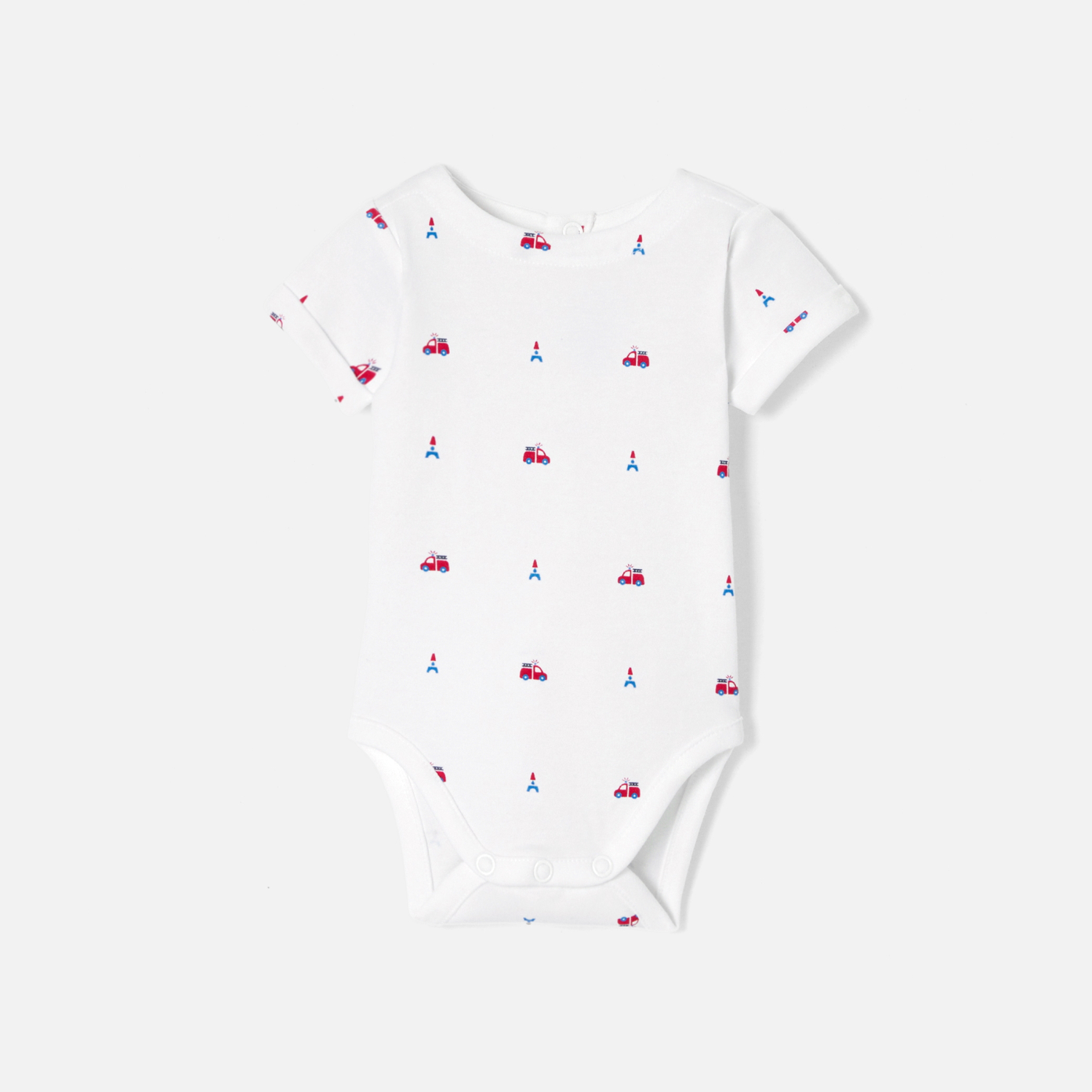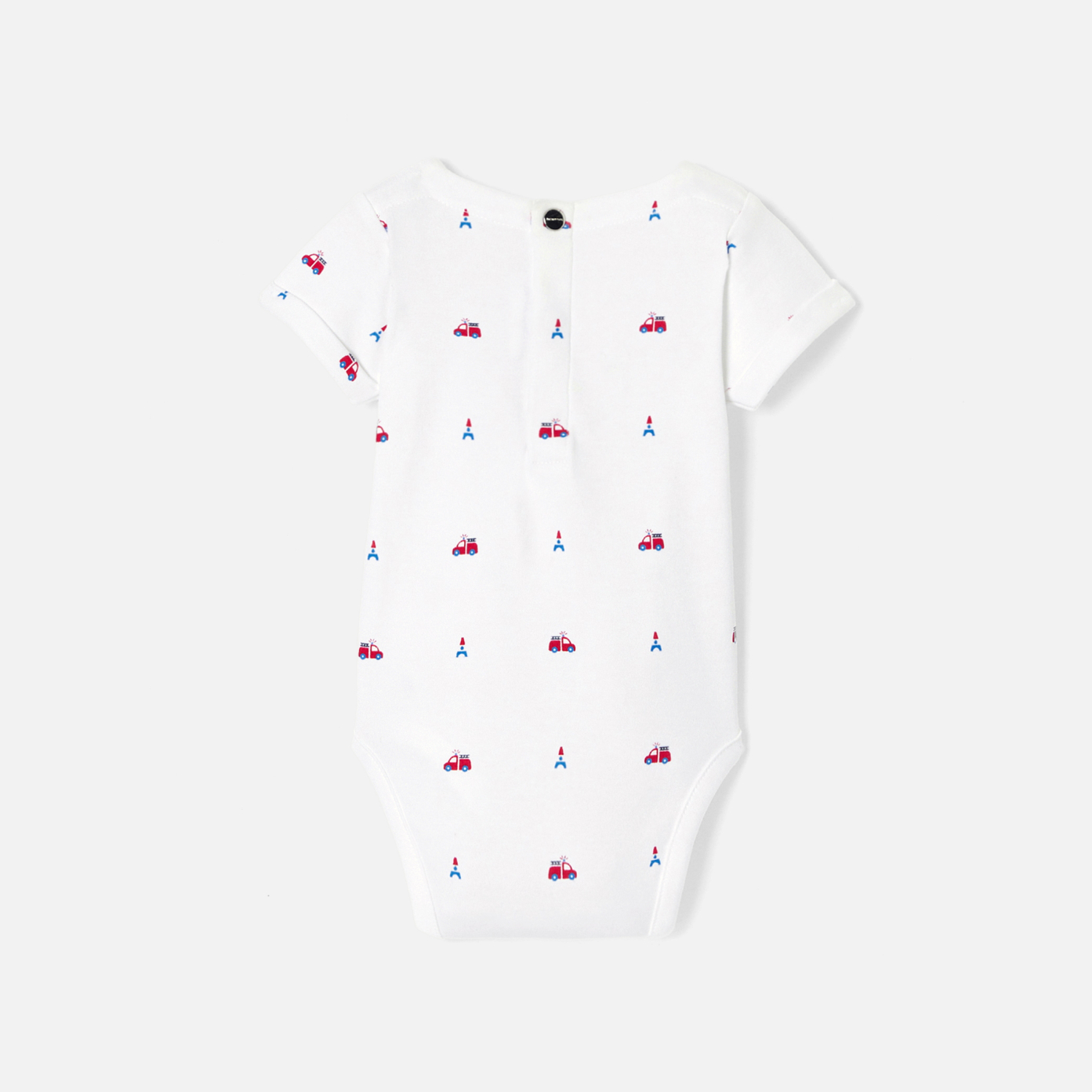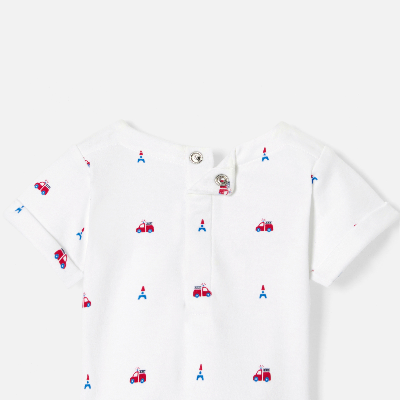 Imagined as a little t-shirt, the baby boy bodysuit is crafted in soft, lightweight organic cotton for spring. Enlivened by Parisian motifs, this everyday essential can easily be worn with a denim romper or discreetly under a sweater.- Organic cotton baby bodysuit- Short sleeves- Parisian motifs- Press studs at back and crotch.