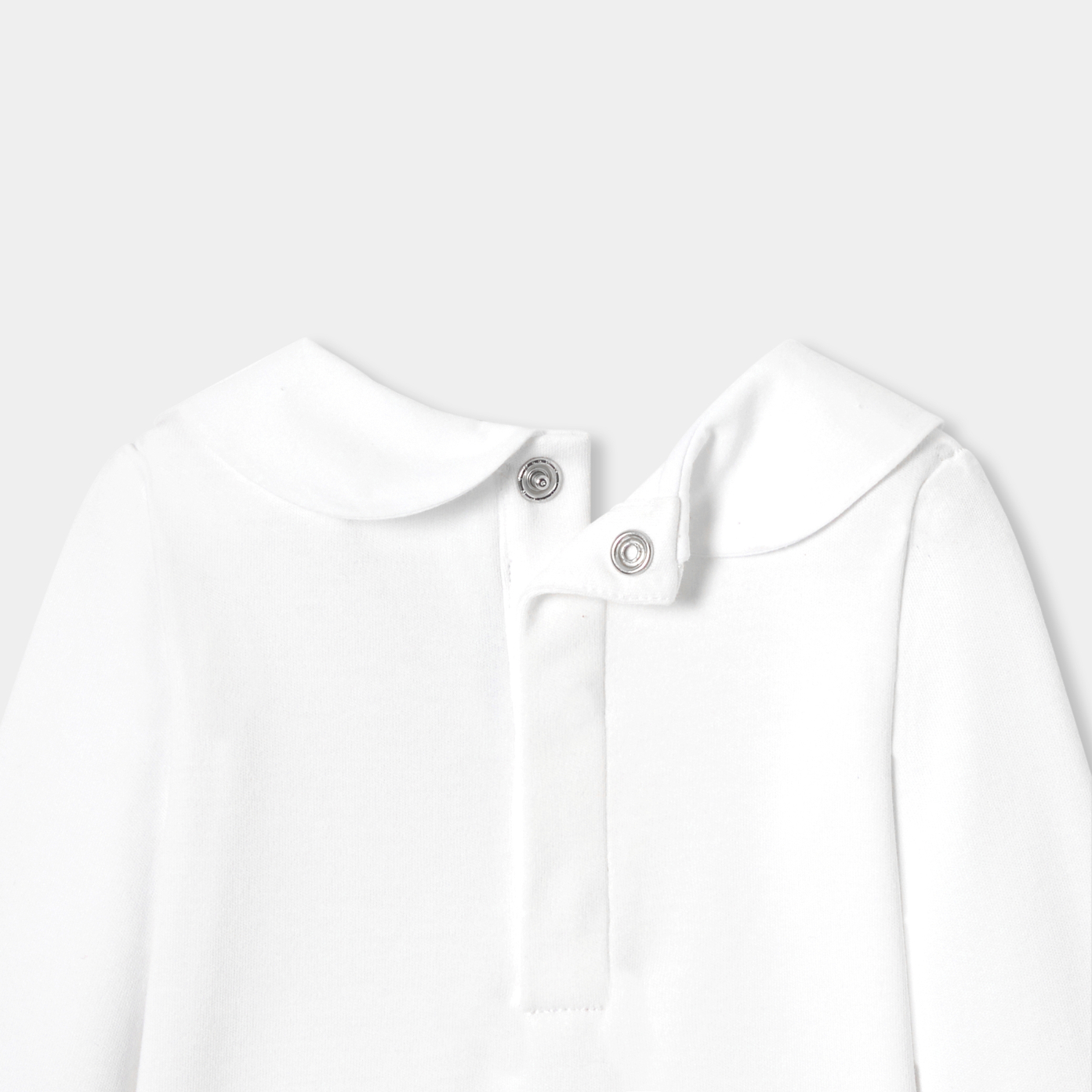 A bodysuit with pure elegance for baby's first days. Made from organic cotton, it features a Peter Pan collar hand-embroidered with the message Petit cœur. Ideal for everyday outfits, it will look great with a jumpsuit or romper.- Organic cotton bodysuit- Hand-embroidered poplin collar- A lovely idea for a newborn baby gift, either for yourself or as a present.