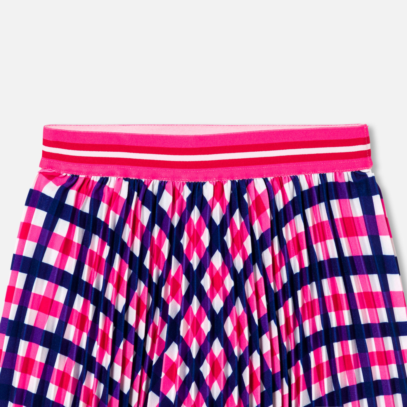 Preppy chic and modern, this season designers are revisiting the schoolgirl skirt. Modernised with a permanent pleat in three-tone gingham, it has an elasticated waistband. Made from soft, supple crepe, your daughter can wear it with a denim blouse or sweatshirt and high socks from the start of the new school year. - Crepe material with a perfect fit - Permanent pleating - Elasticated waistband