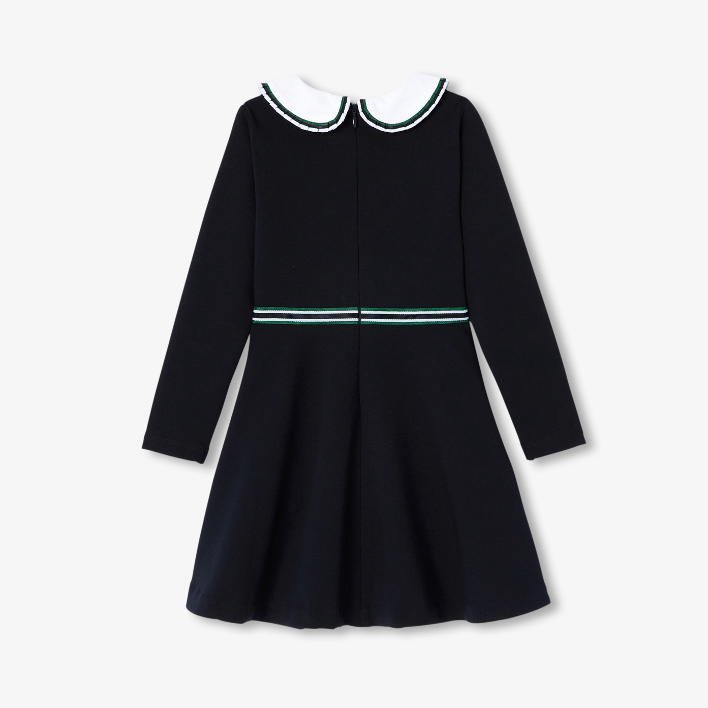 Meticulous detail and preppy chic cut for this elegant girl dress. Made from milano knit, it features a Peter Pan collar with ruched detail and an integrated belt in striped grosgrain. Worn with a trench coat for back-to-school, slip it quickly into her wardrobe.- Long-sleeved dress in milano knit- Poplin Peter Pan collar with ruched detail- Striped grosgrain belt- Invisible zip opening at back