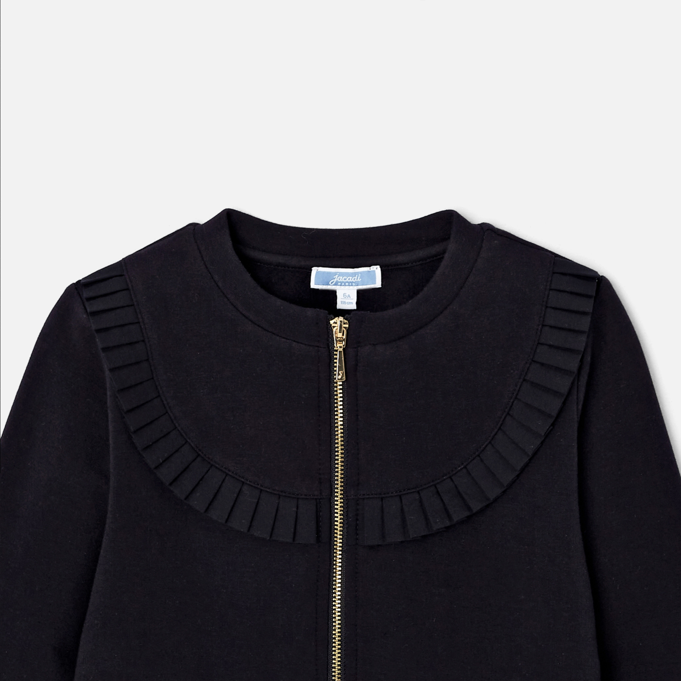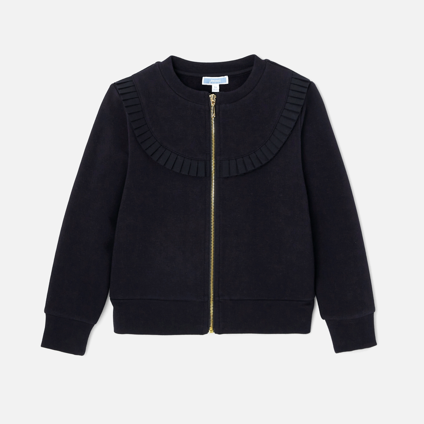 Adorned with a ruching detail on the neckline, this girl zipped cardigan comes in soft, comfortable fleece. Easy to slip on thanks to its zipped opening, little girls will be able to wear it over a t-shirt paired with flare trousers for spring.- Brushed interior fleece- Ruching details- Zipped opening- Invisible pockets in seams