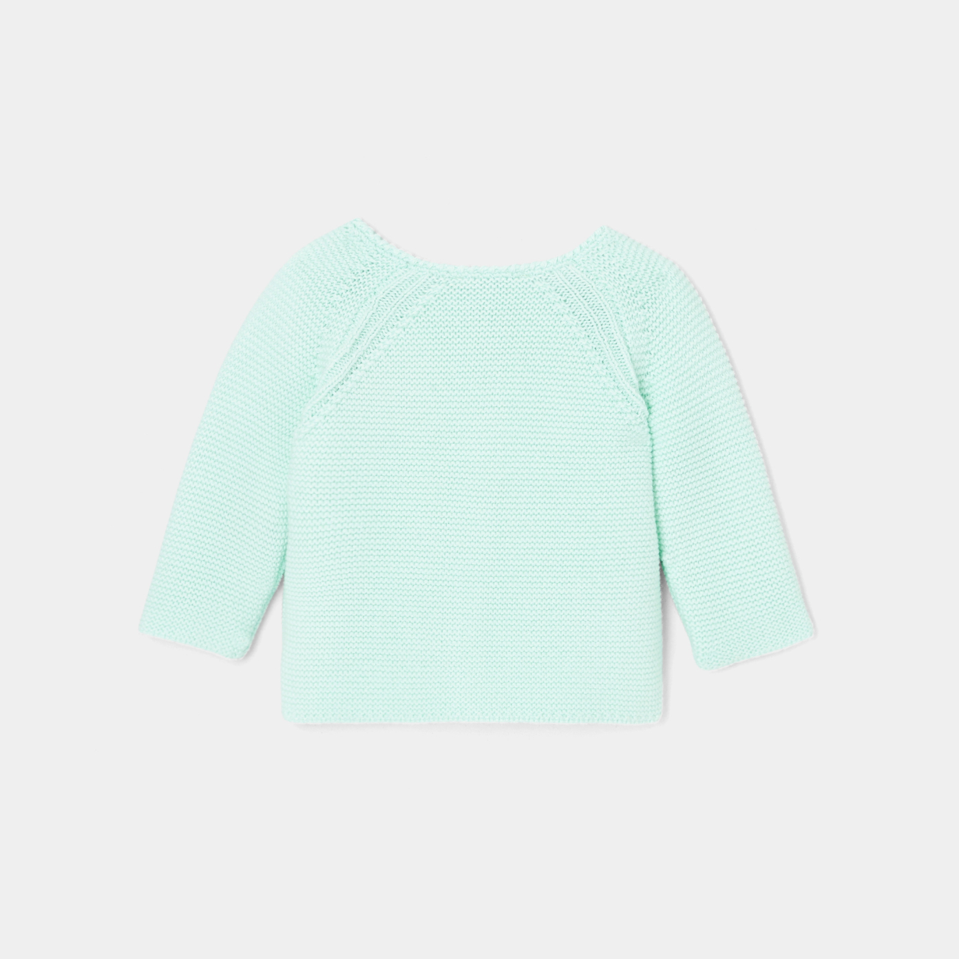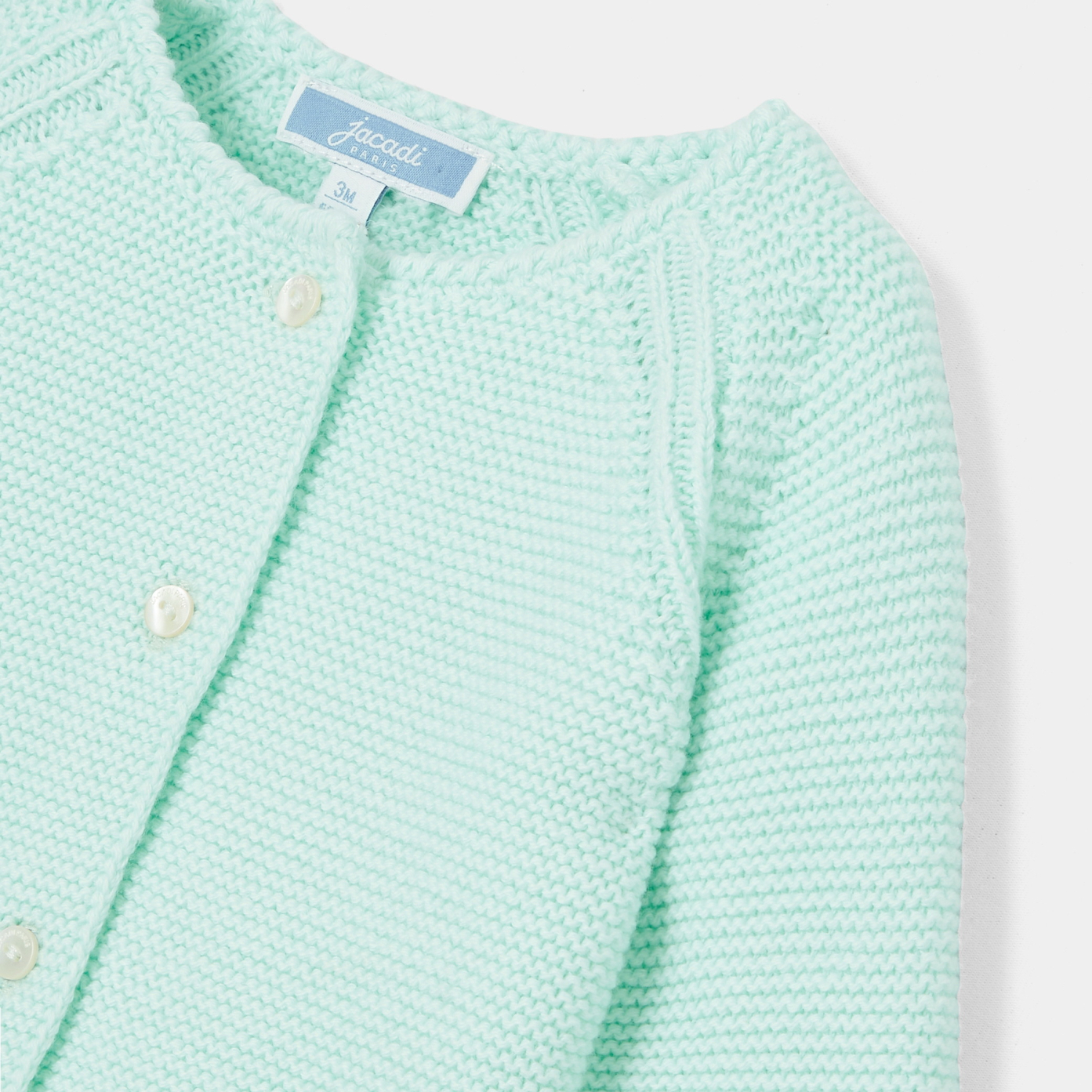 Compose a stylish and responsible first wardrobe with this baby girl cardigan. Made in organic cotton and cashmere, its colour will perfectly match a bloomer or a Liberty dress.- Organic cotton and cashmere- Openwork details on armholes- Natural mother-of-pearl button opening - Nice newborn gift idea or for yourself