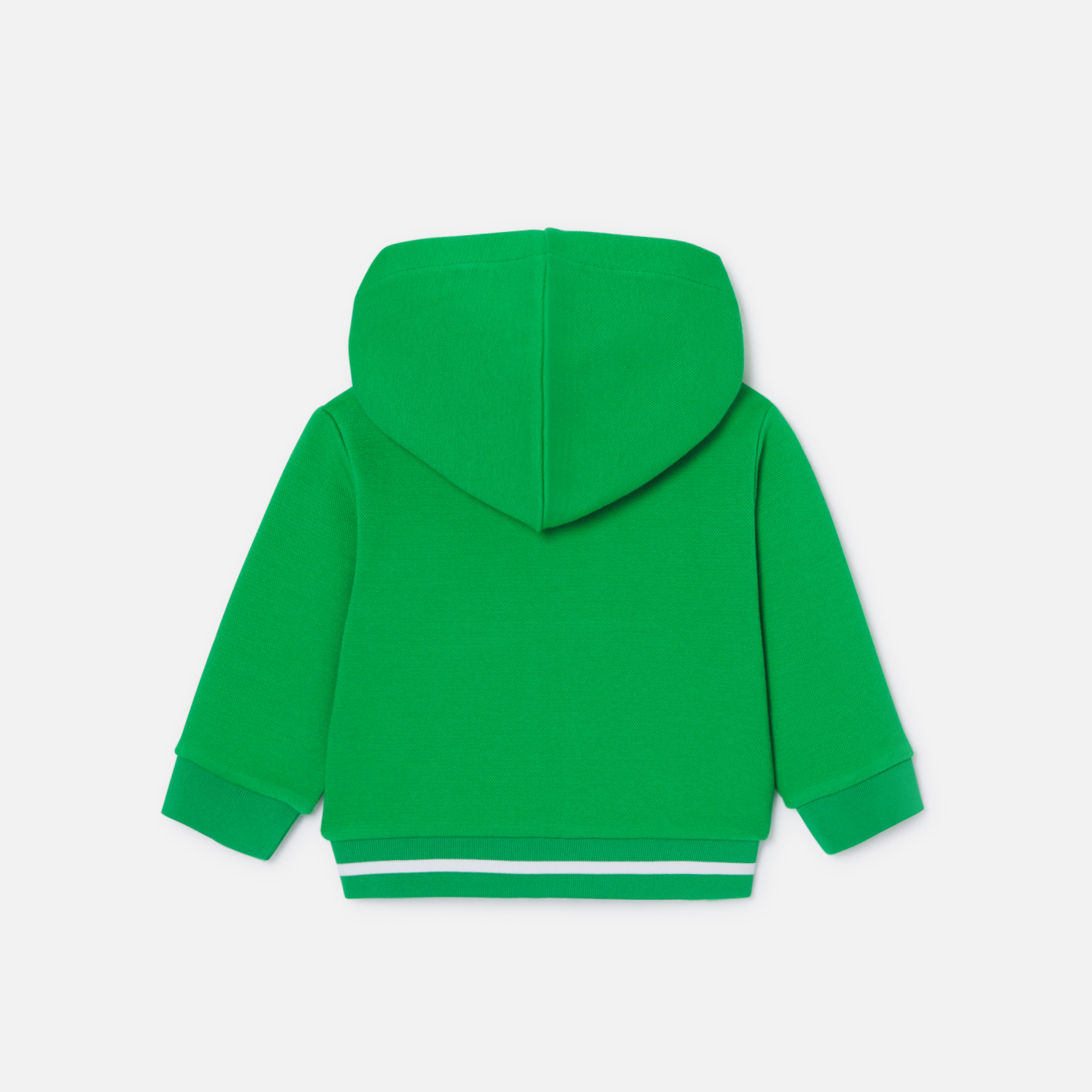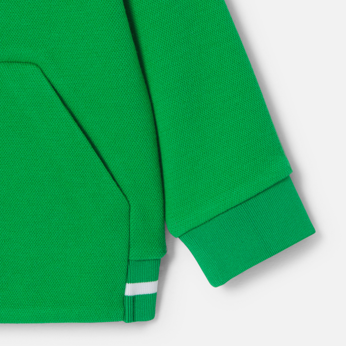 Inspired by sportswear, this baby boy's zip-up cardigan is a golf green for late summer. Made from soft, lightweight cotton piqué, the hood, large pockets and striped ribbed detail give structure to this style statement.- Zip-up sweatshirt in organic cotton- Piqué knit- Zip opening- Jacadi badge on chest- Patch pockets- Striped ribbed hem