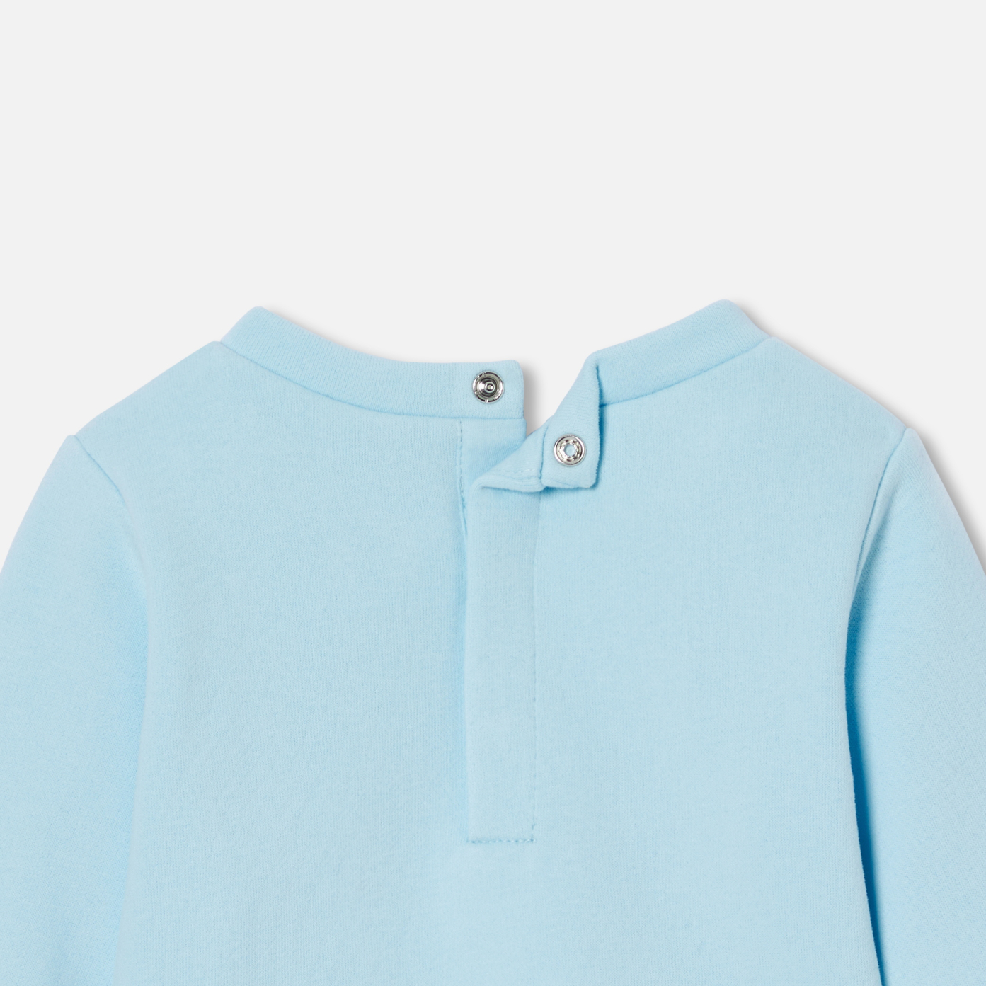 Everyday casual chic in this new baby girl sweatshirt. Soft and comfortable thanks to its brushed fleece interior, little cat with lacquered effect and elasticated cuffs and hem finish off this must-have for the start of the season, easy to match with shorts or jeans.- Organic cotton sweatshirt- Brushed fleece interior- Round neck- Elasticated cuffs and hem- Back press stud opening- Lacquered effect cat animation