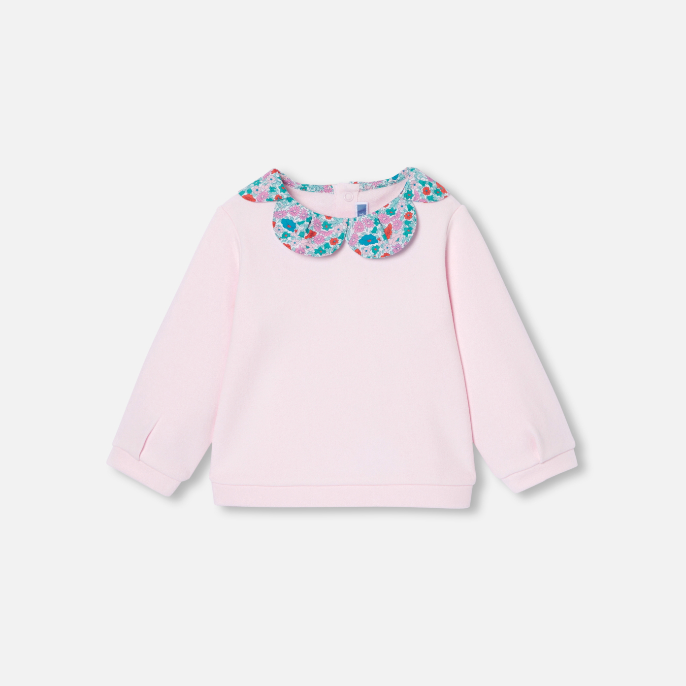Jacadi has mastered the art of beautiful combinations with this baby girl sweatshirt. Blending chic and casual to perfection, a petal collar in Liberty fabric enhances this new-season essential, to be worn with jeans and patent leather ankle boots.- Organic cotton sweatshirt- Brushed fleece inside - Petal collar in Liberty Poppy forest fabric, exclusive Jacadi colouring - Press stud opening on back