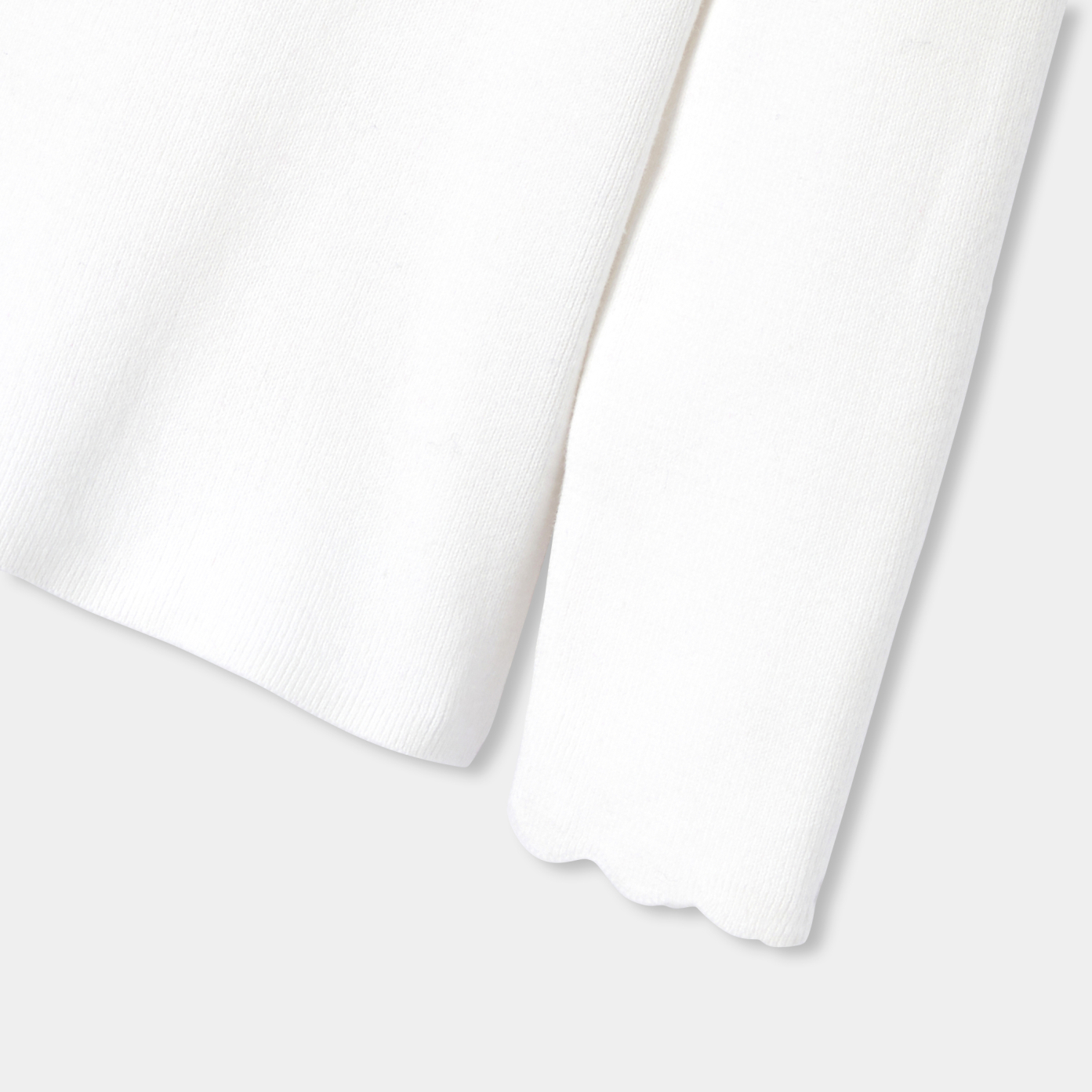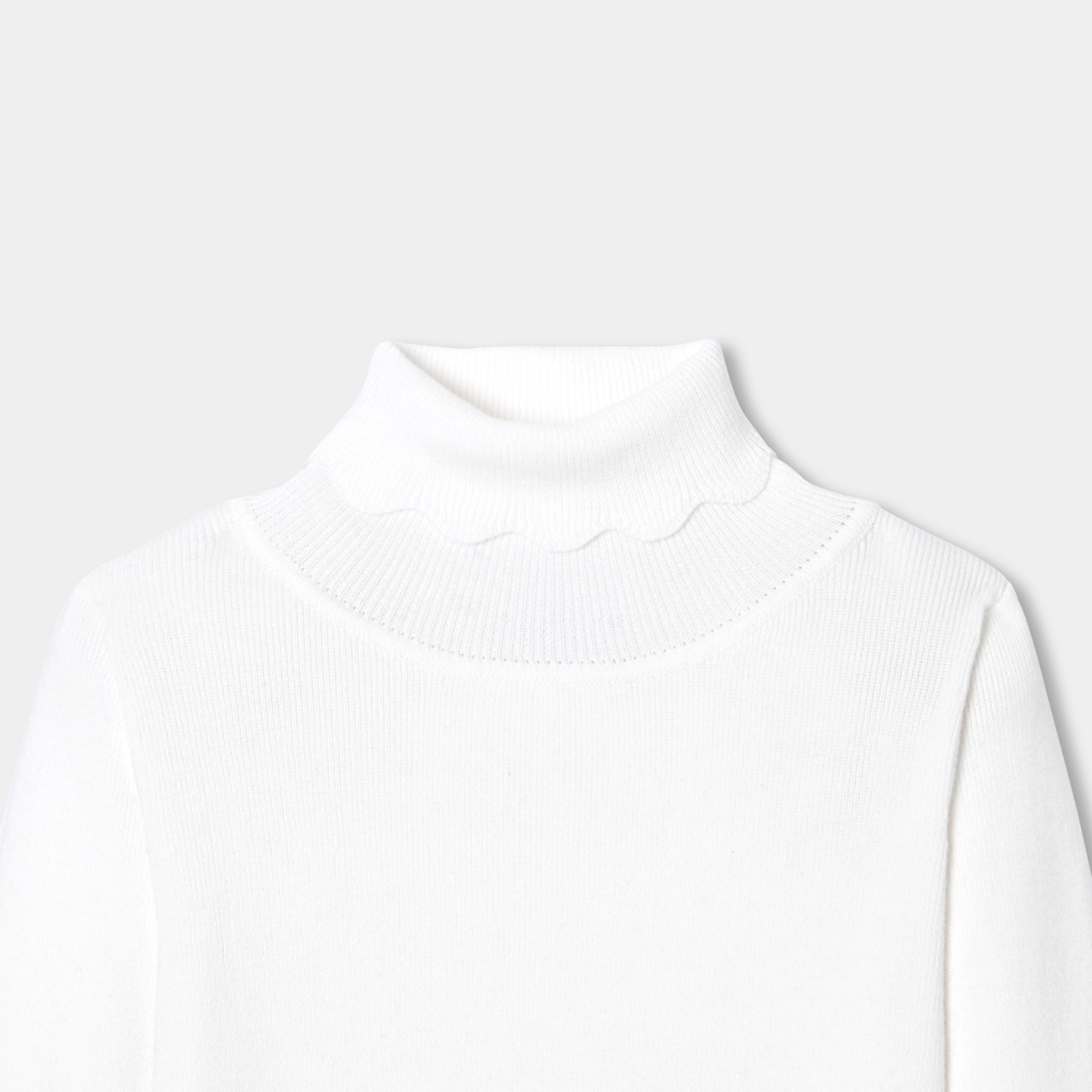 This girl jumper is available in organic cotton for the start of the season. Cut close to the body and featuring a turtleneck, pair this essential with a trapeze skirt or wide-leg trousers for a contemporary retro look. - Girl organic cotton turtleneck jumper - Ribbed knit - Turtleneck- Scalloped trim