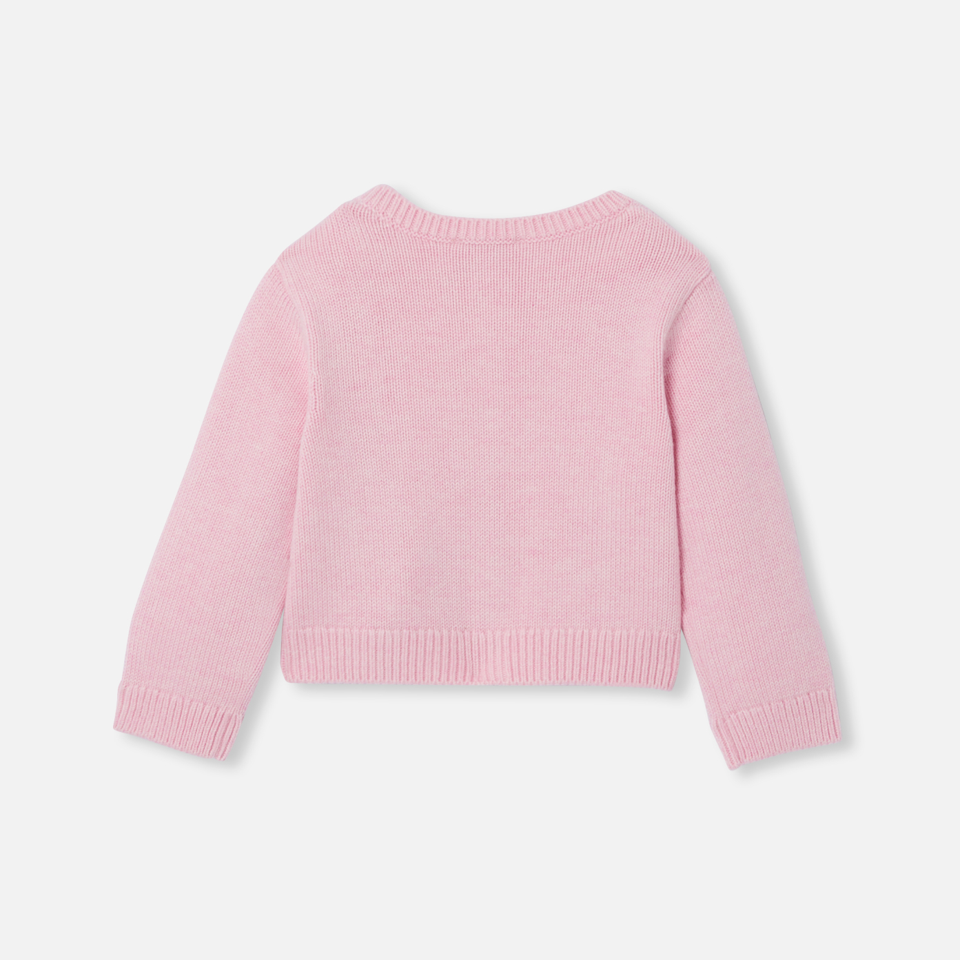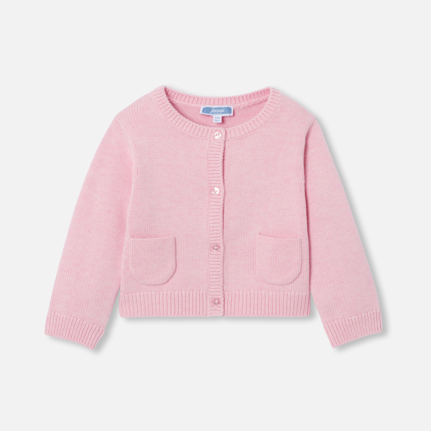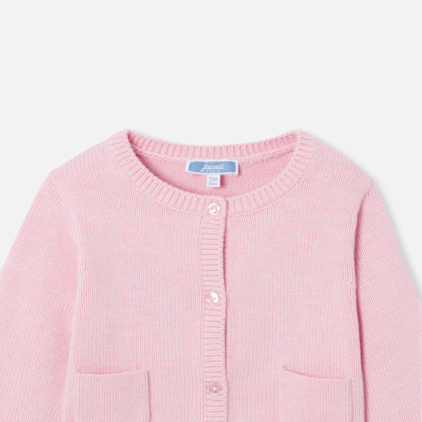 A wardrobe classic in soft colours that is easy to match, choose the softness of this baby girl wool and cotton cardigan for autumn. Accessorised with patch and buttoned pockets, pair it with a blouse and paperbag trousers for a retro chic look. - Wool and cotton - Patch pockets - Tone-on-tone buttoned opening