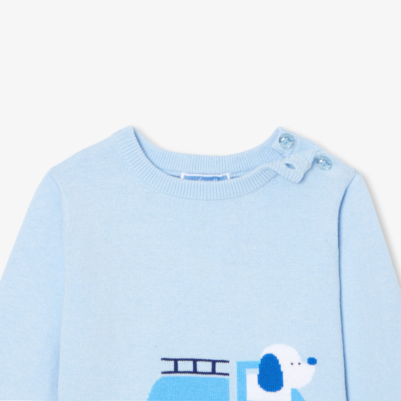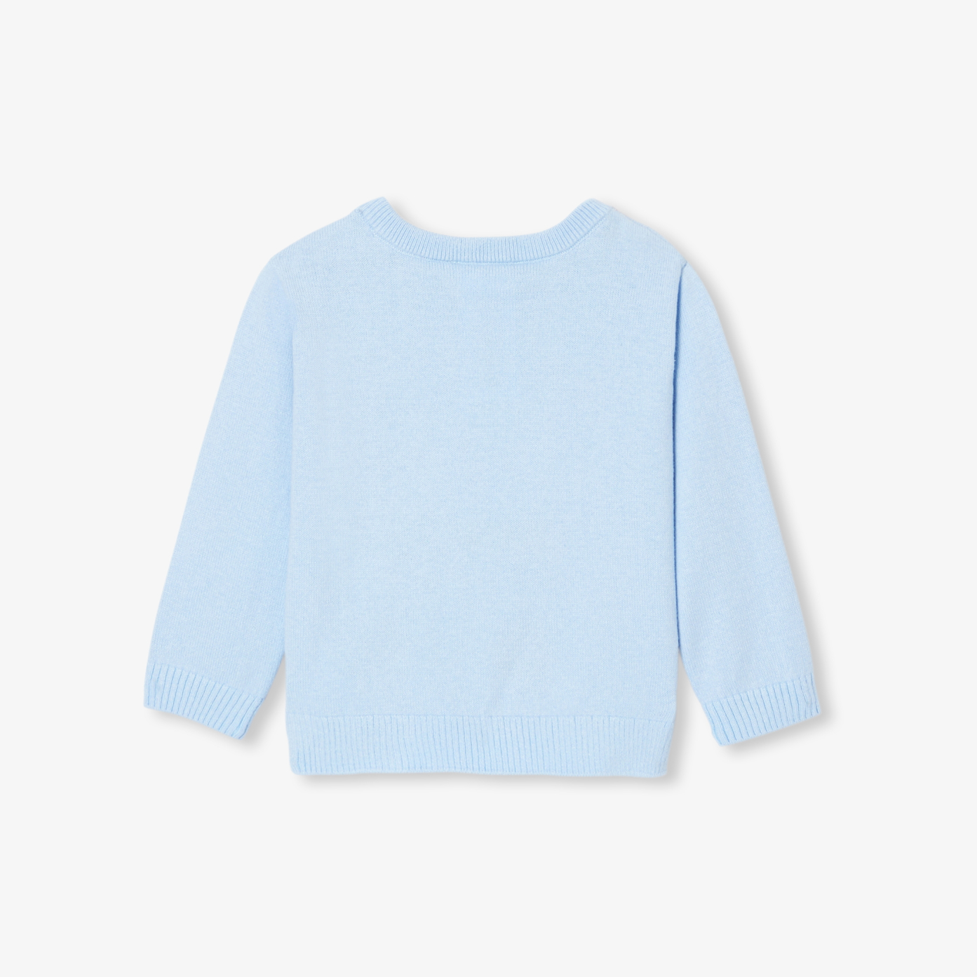 A casual and playful season with this organic cotton sweater. Soft and easy to slip on with its button placket on the shoulder, this begining of the season wardrobe essential, best paired with rolled-up jeans and trainers, seduces with its original motif placed at the bottom.-Baby boy jumper in cotton-Button placket on shoulder-Intarsia placed at the bottom-Side rib trim