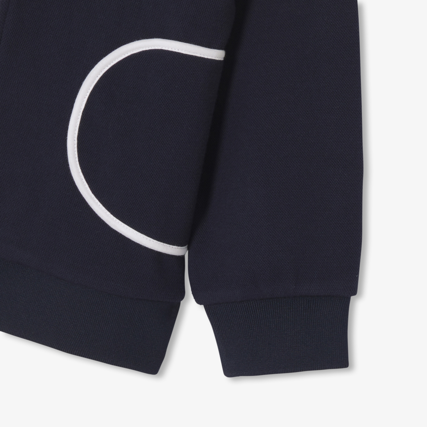 A chic, casual silhouette in a girl zip-up sweatshirt. Double-sided cotton pique, hood, white bias patch pockets and zipped opening complete this model, to be worn with matching joggers for everyday wear.- Girl zip-up sweatshirt in organic cotton- Double-sided pique- Hood- White bias patch pockets- Zipped opening- JP logo on front panel