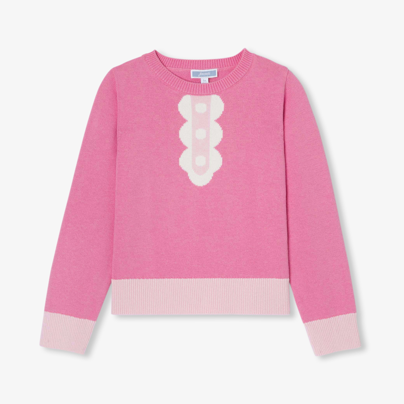 This season, our designers have reworked the classic cut of the girl sweater for a chic, contemporary look. Made from organic cotton and sustainable wool, it features an intarsia button placket for a trompe-l'œil effect. Wear with wide-leg trousers and babies for a chic, Parisian back-to-school silhouette.- Girl sweater in organic cotton and sustainable wool- Trompe-l'oeil button placket in intarsia- Ribbed trim- Back opening for sizes 3 and 4 years
