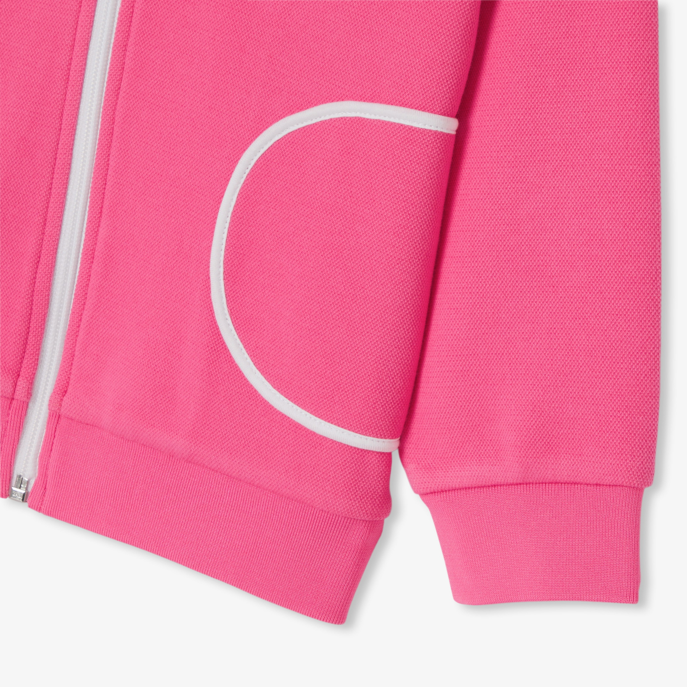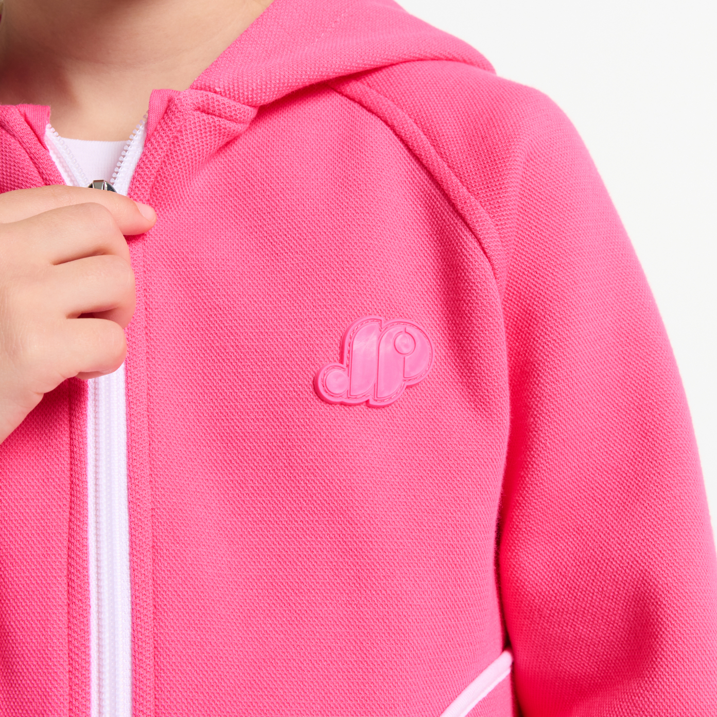 Wearable on the sports field and for everyday wear, this girl cardigan takes the form of a double-sided quilted sweatshirt with zip. Featuring a hood and contrasting bias pockets, this hoodie can be worn over a t-shirt with joggers or jeans, and is a must-have for back-to-school wardrobes.- Girl child hoodie- Double-sided organic cotton pique- White bias patch pockets- Debossed JP branding on chest- Zipped opening
