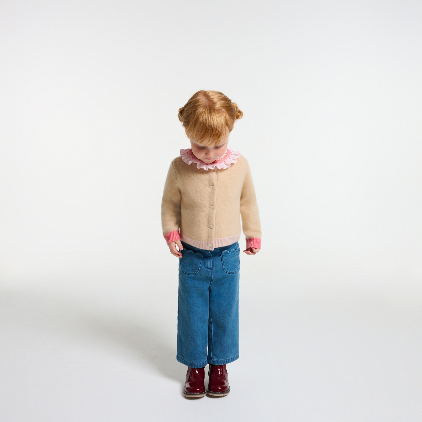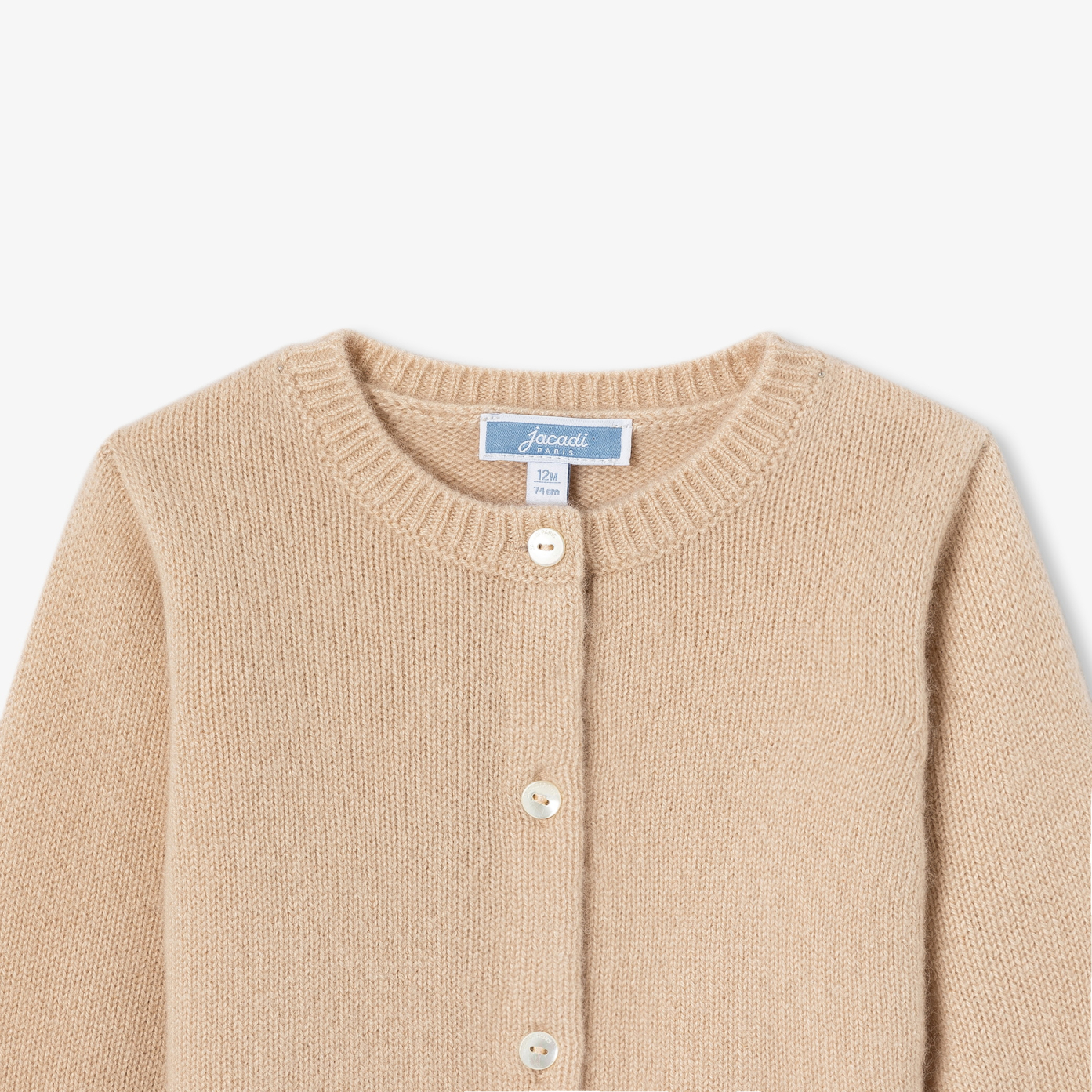 Minimalist elegance is expressed in this cashmere baby girl cardigan. Embellished with contrasting details, this winter essential can be paired with a white poplin blouse and jeans for a resolutely chic look.- Baby girl cashmere cardigan- Contrasting finishes- Tone-on-tone buttoning