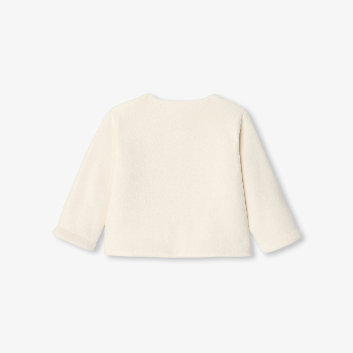 A winter essential, our stylists have adapted the timeless baby girl cardigan in elegant, soft and cosy microfleece. Chic and contemporary, wide scallops and patch pockets energise this cocoon of softness in which baby will love to cuddle up.- Baby girl cardigan in microfleece- Scalloped details- Patch pockets- Snap closure
