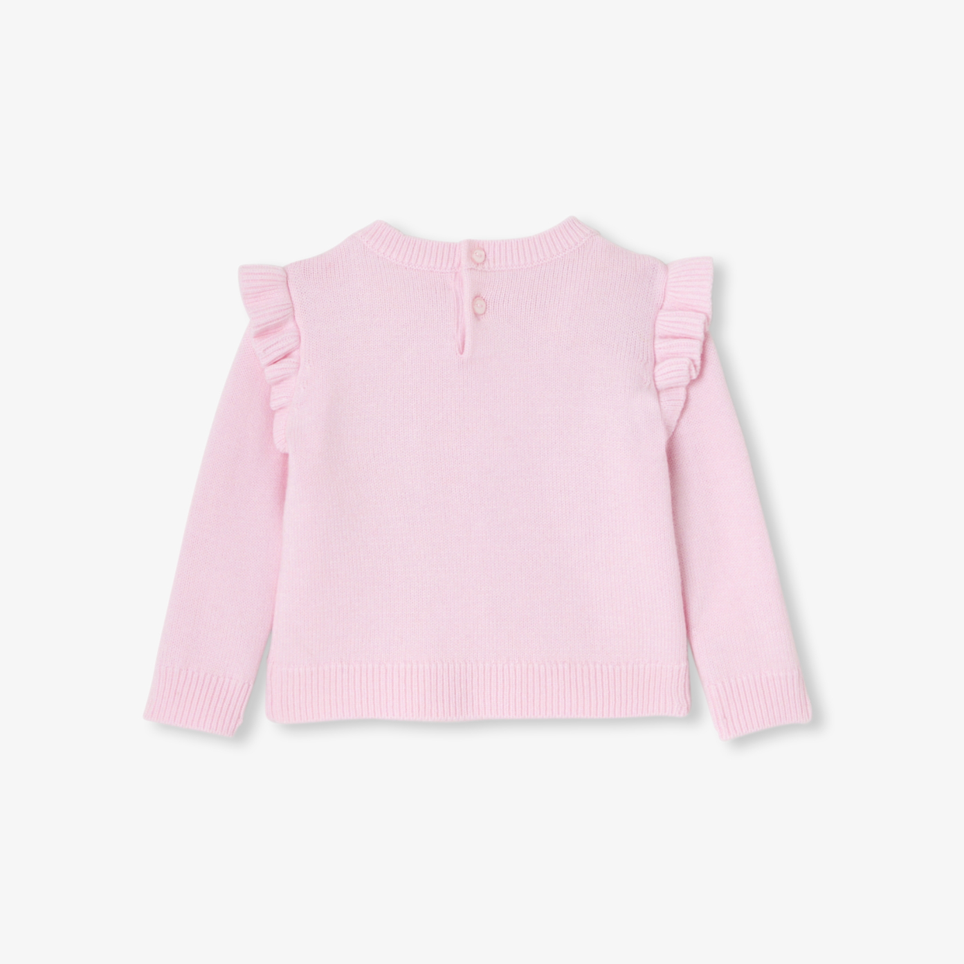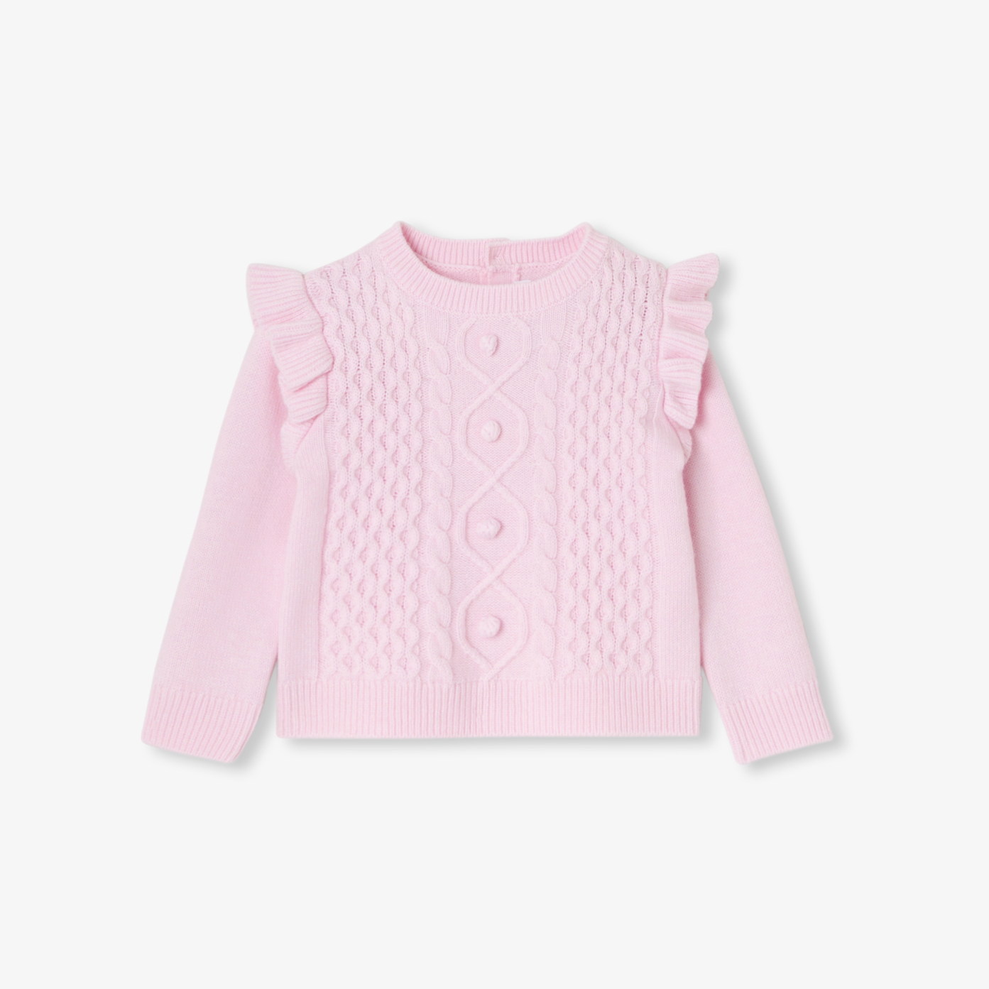 Inspired by the chic tartan jumper, this baby girl sweater radiates Jacadi elegance. In warm, supple sustainable wool, stitch play on the front and ruffled armholes sublimate this model to be worn with velvet trousers or jeans.- Sustainable wool baby girl jumper- Stitch play on the front- Ruffled armholes- Buttoned back opening