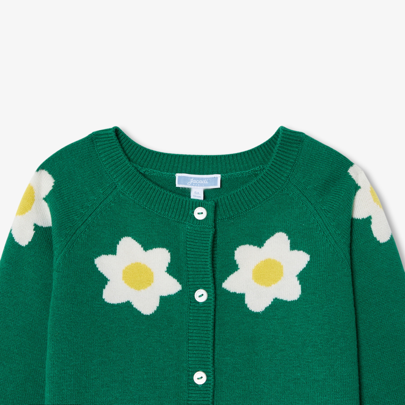 Crafted in sustainable wool and cashmere, this girl cardigan features elegant floral intarsia at the neckline. Easy to slip on thanks to its tone-on-tone buttoned opening, it can be slipped over a dress or collar t-shirt to create a chic, preppy silhouette.- Sustainable wool and cashmere cardigan- Daffodil intarsia at neckline- Tone-on-tone buttoned opening