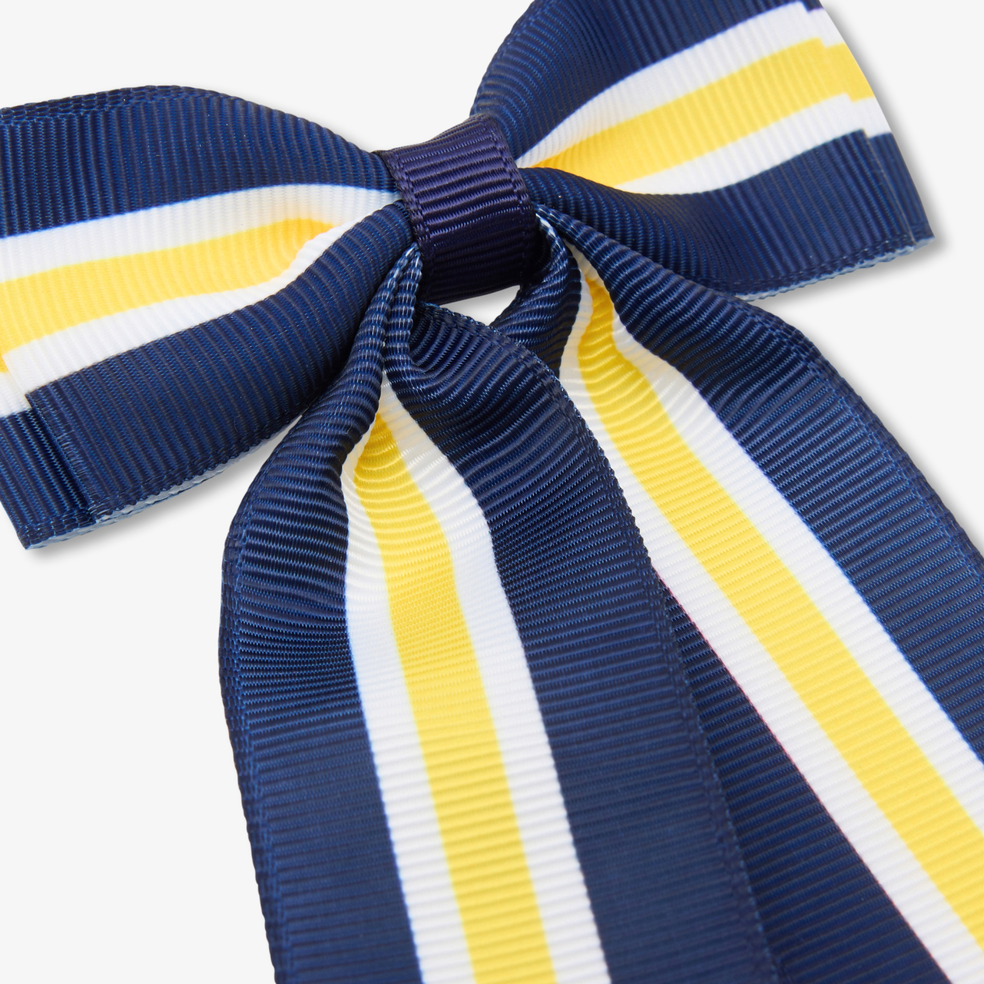 To sublimate a half-tail or ponytail, choose the preppy elegance of this large-format hair clip. Adorned with a double bow in navy grosgrain, striped in yellow and white, it will add a geometric touch to everyday outfits.- Large barrette- Double grosgrain bow