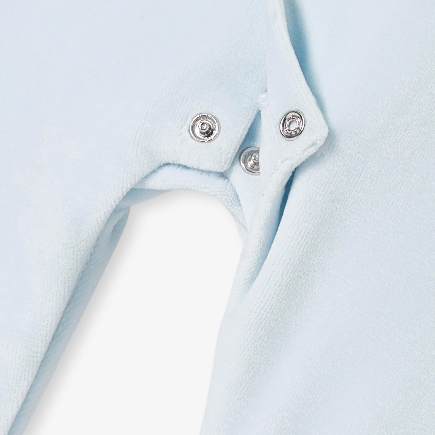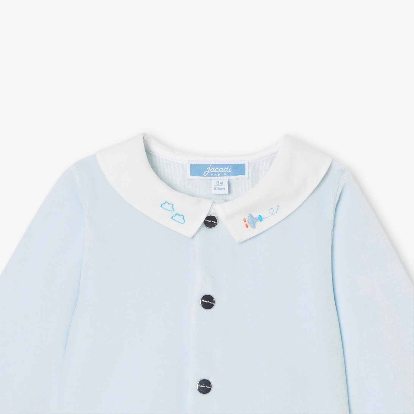Made from soft, supple velvet, these baby boy pyjamas are accessorised with an elegant, hand-embroidered poplin collar. Designed to welcome baby from the very first days at the hospital and every day thereafter, they feature a front opening and a press-stud crotch for easy dressing and changing. Slip it into your hospital bag and your first trousseau or you have got a great idea for a birth gift.-Organic cotton baby boy bodysuit-Hand-embroidered poplin collar-Snap front and crotch opening-Great idea for a baby gift, either for yourself or as a present.
