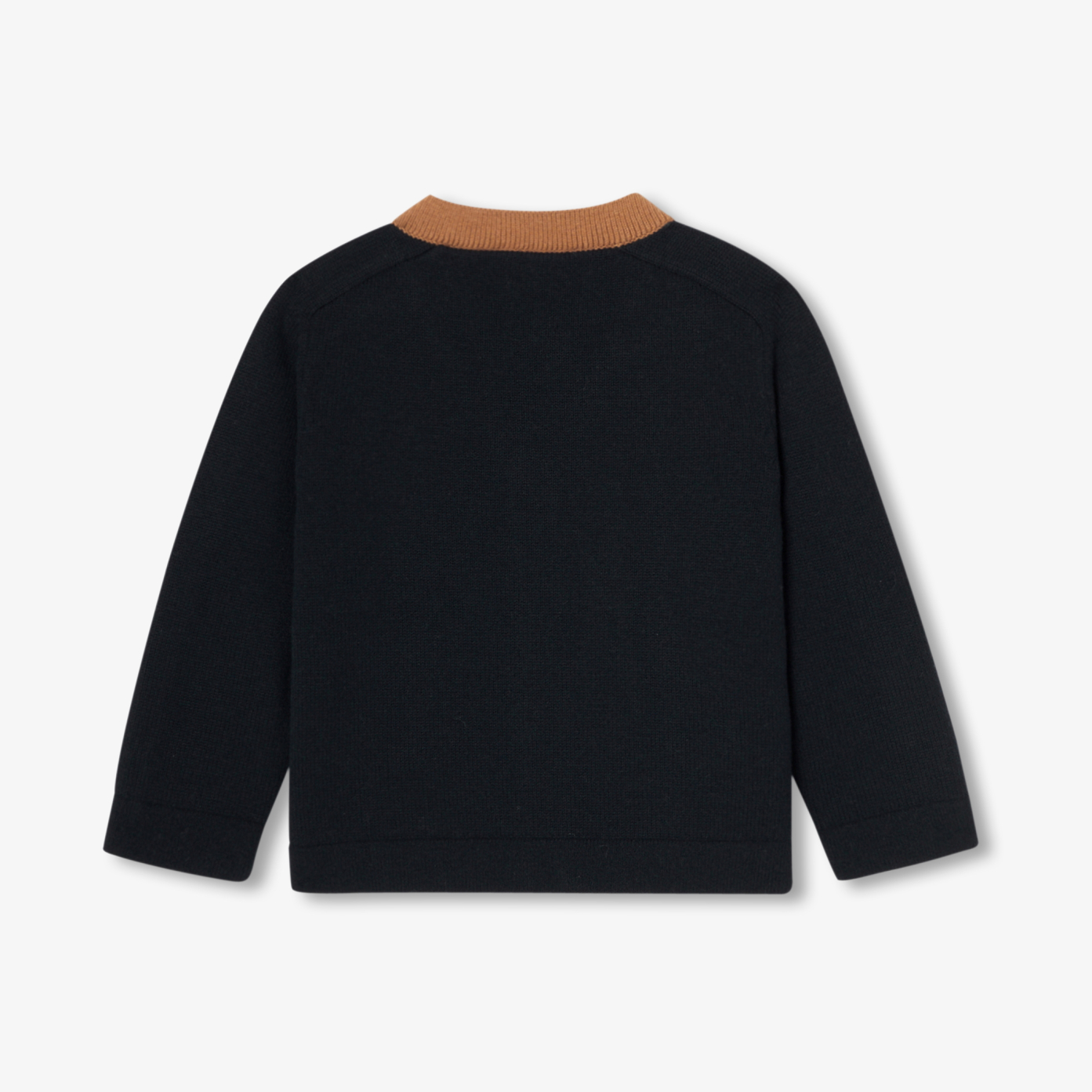 A season placed under the sign of contemporary elegance with this baby boy cardigan. Crafted in wool with a touch of cashmere, this colour-block model will sublimate autumn silhouettes.- Sustainable wool and cashmere cardigan- Contrast neckline and pockets- Patch pockets at base- Buttoned opening