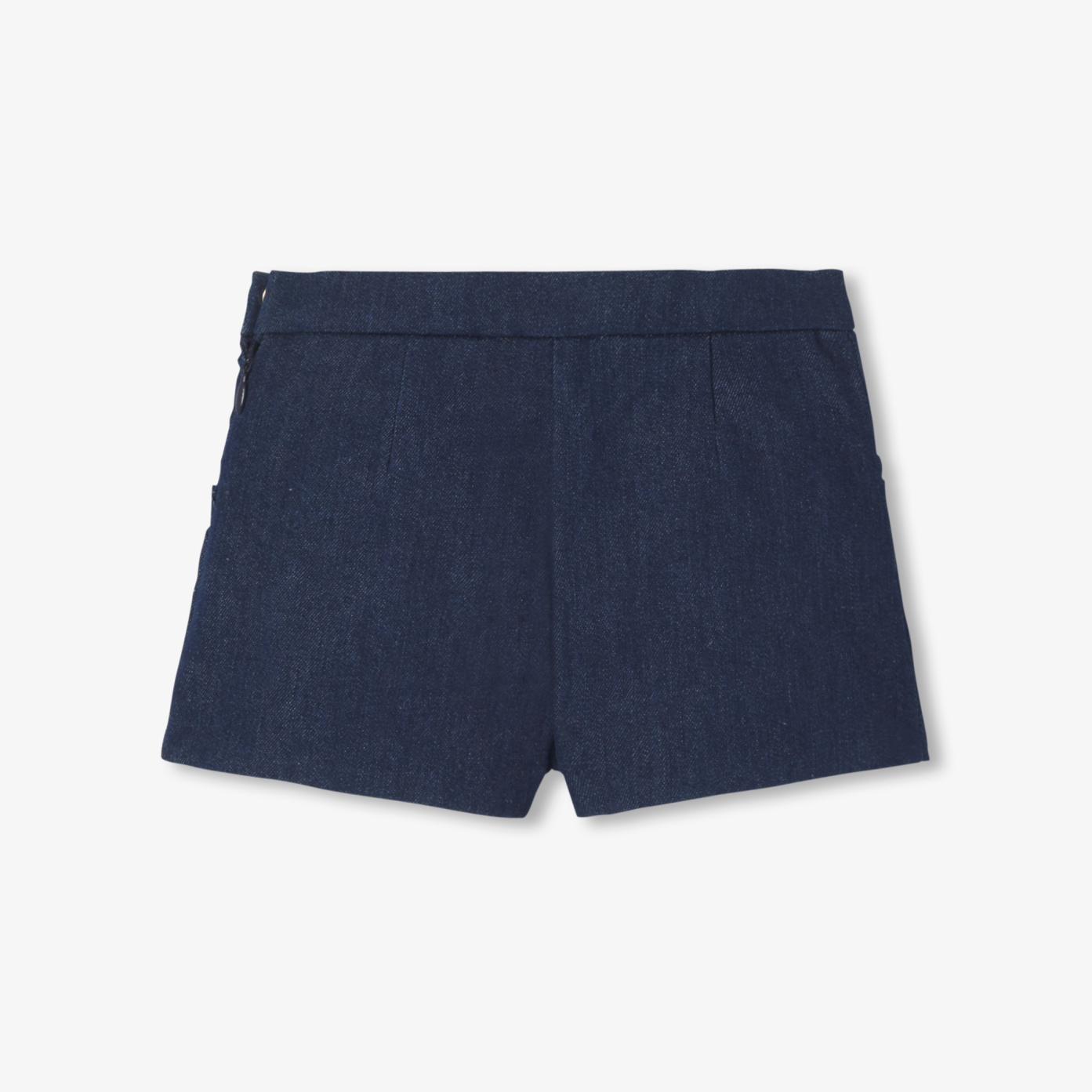 A season of preppy elegance with these baby girl denim shorts. In raw denim, Italian ruched pockets and gold bridge rivets sublimate this model to coordinate with a t-shirt and a knit tank top for a modern silhouette.- Baby girl denim shorts- Soft denim canvas- Cotton voile lining- Italian ruched pockets- Gold rivets at waist- Elasticated waist adjustable from inside