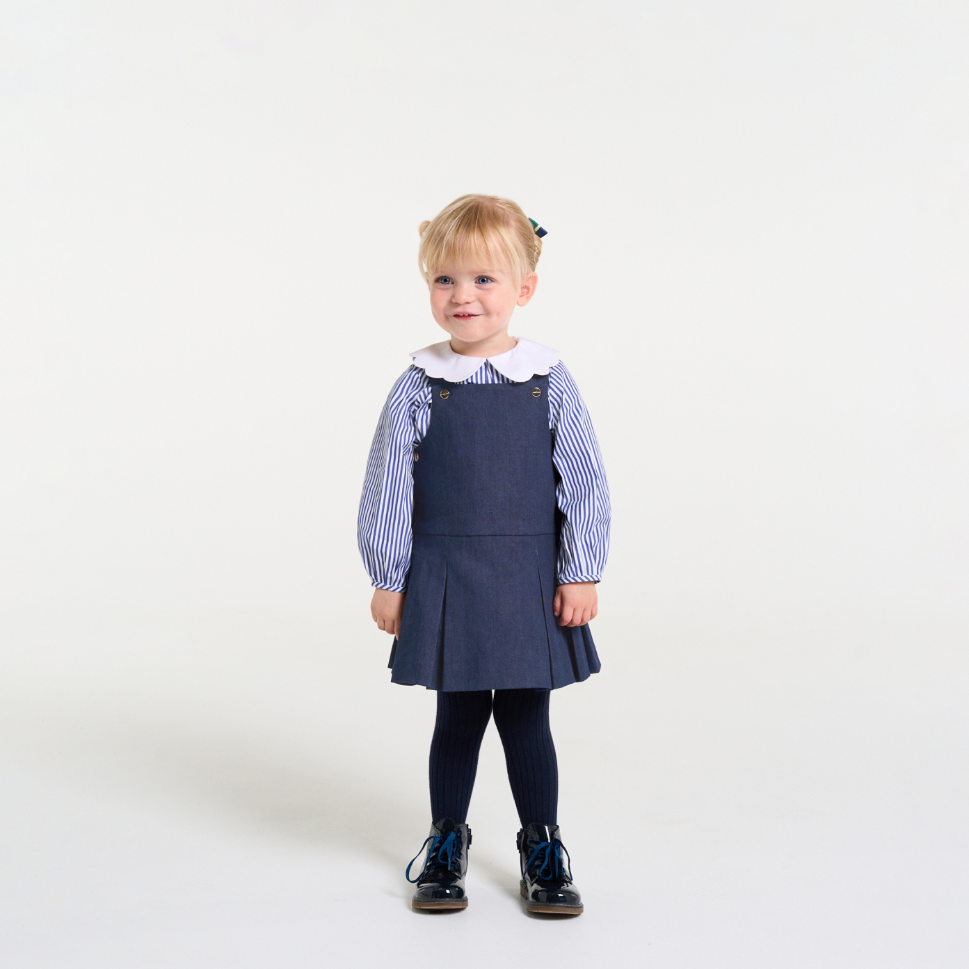 A classic in children's wardrobes, Jacadi revisits the timeless baby pinafore dress. With its low waist and pleated skirt, the authenticity of its cut meets the modernity of raw denim for a contemporary retro look. Worn over a t-shirt with tights and babies, this perfect everyday piece is yours to give right now.- Denim baby pinafore dress- Raw denim- Low waist- Pleated skirt-- Gold pressings