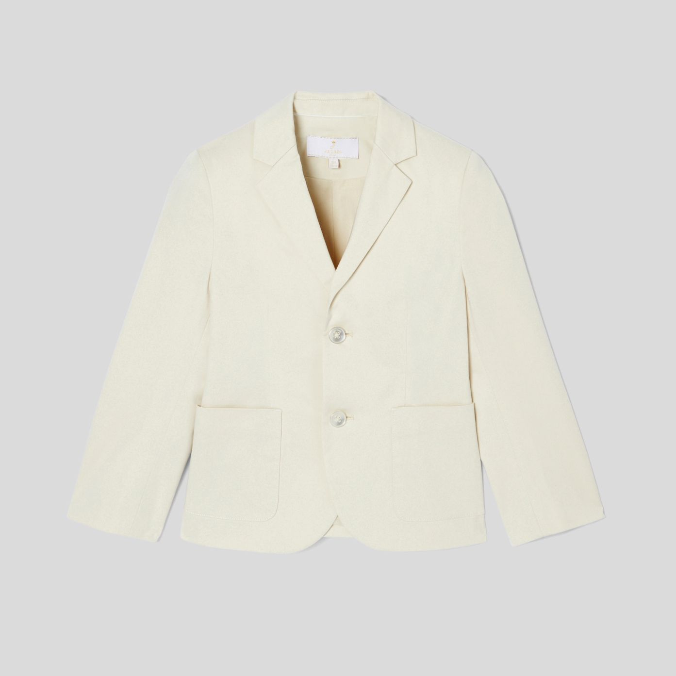 This perfect boy ceremony jacket can easily compare to older kids' wardrobe. Made with stretch cotton and lined with cotton, patch pockets and button fastener complete this model to pair with matching bermuda shorts or trousers for a ceremony. - Stretch cotton - Cotton lining - Patch pockets- Button fastener