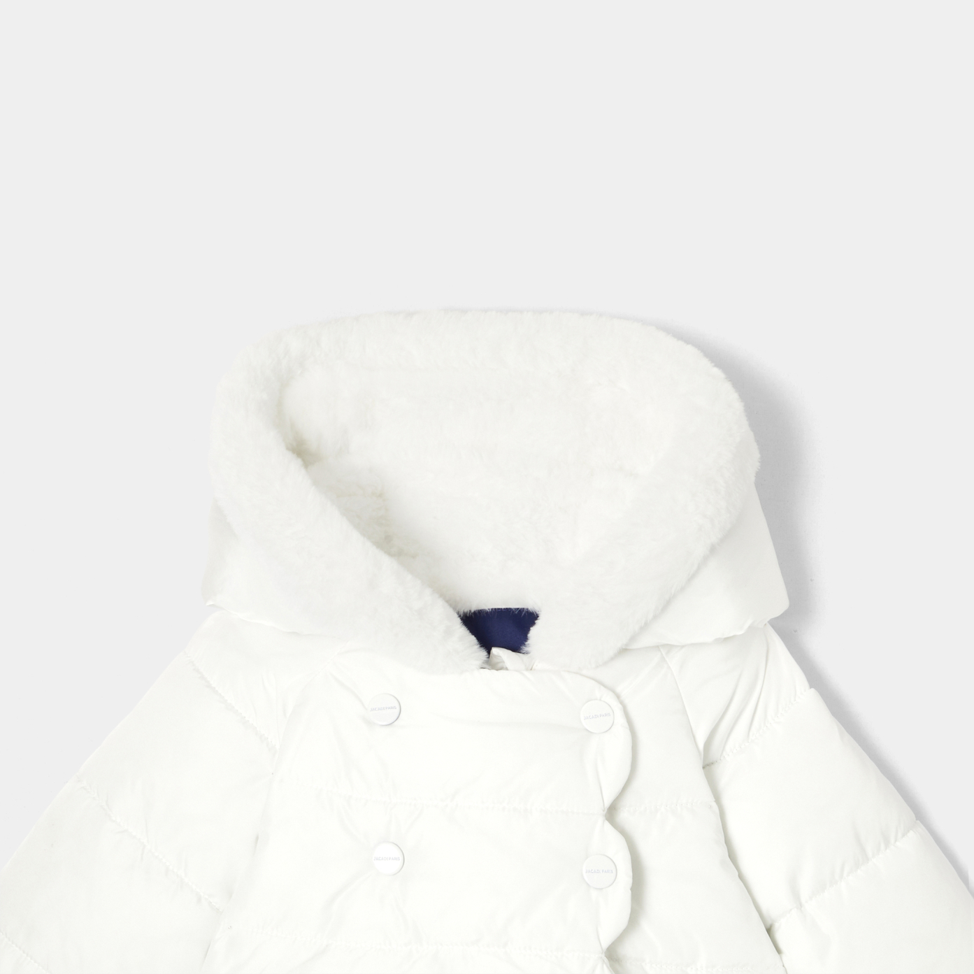 Made to withstand the test of time, this baby girl puffer jacket strikes the right balance between elegance and modernity. Made with water-repellent nylon and lined in faux fur for optimal coverage, it opens with zippers and snaps for easy dressing. Worn over a dress or with trousers, it will be perfect for a autumn getaway with the family.- Nylon- Faux fur lining- Crossed zip and snap opening- Integrated lined hood- Repreve recycled fibre filling