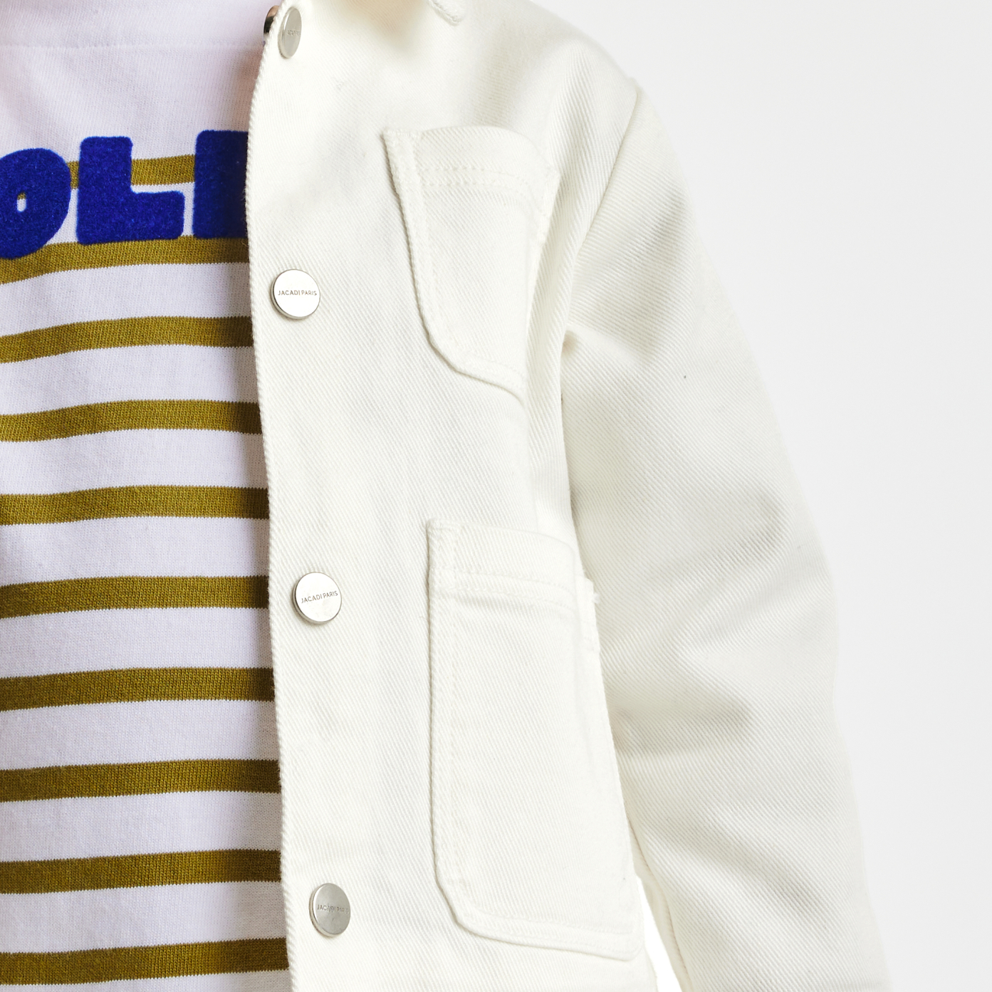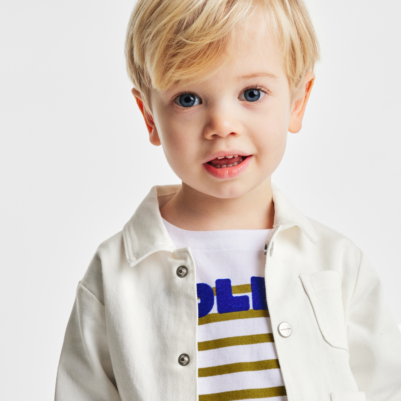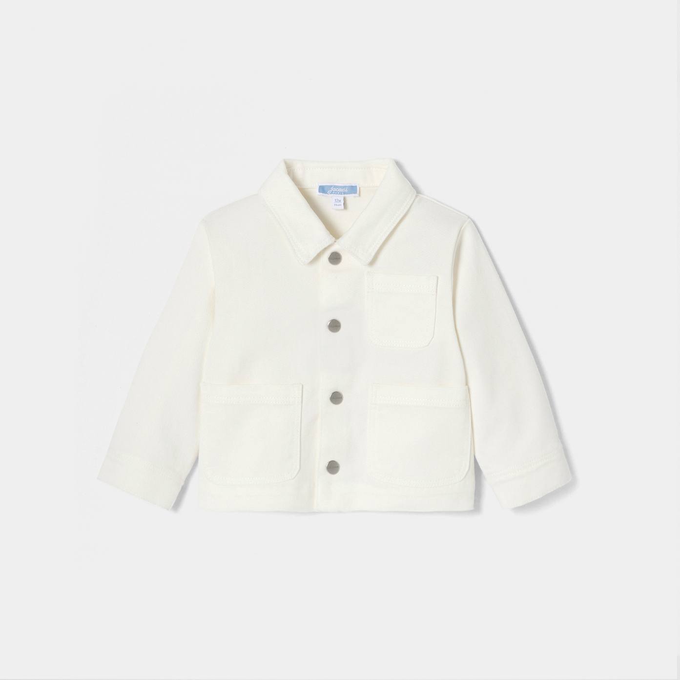 Inspired by the workwear wardrobe, this baby boy jacket adopts a contemporary look for spring. A versatile model that can be worn over a sweater or a sailor suit for a look full of French charm, it will be part of every outing.- Organic cotton baby boy worker jacket- Soft twill- Patch pockets- Press stud opening