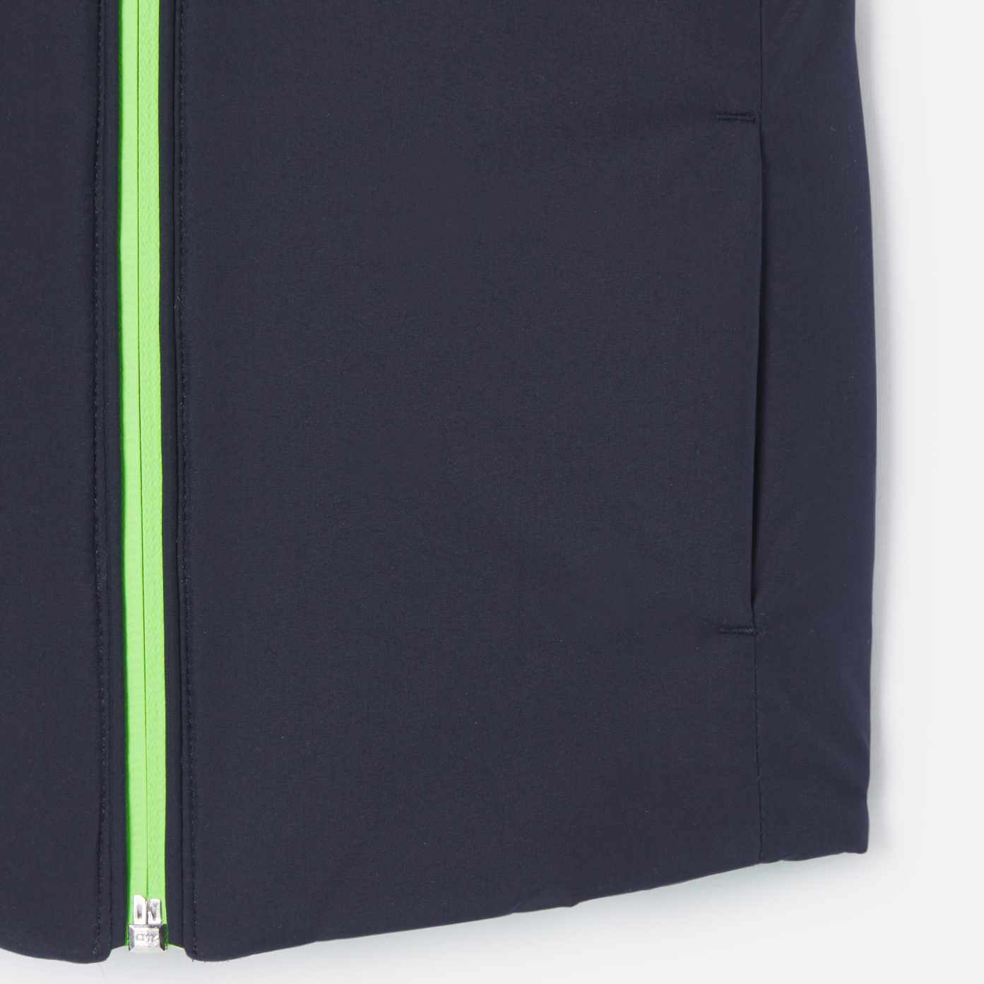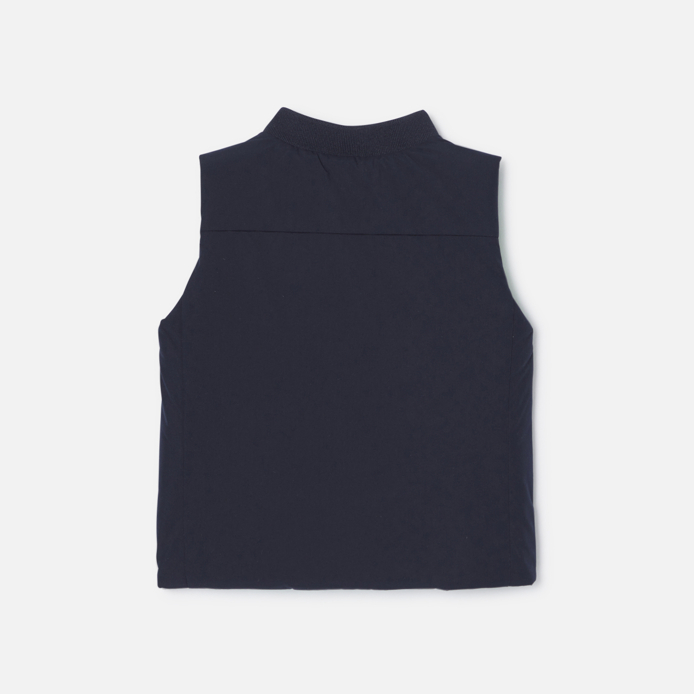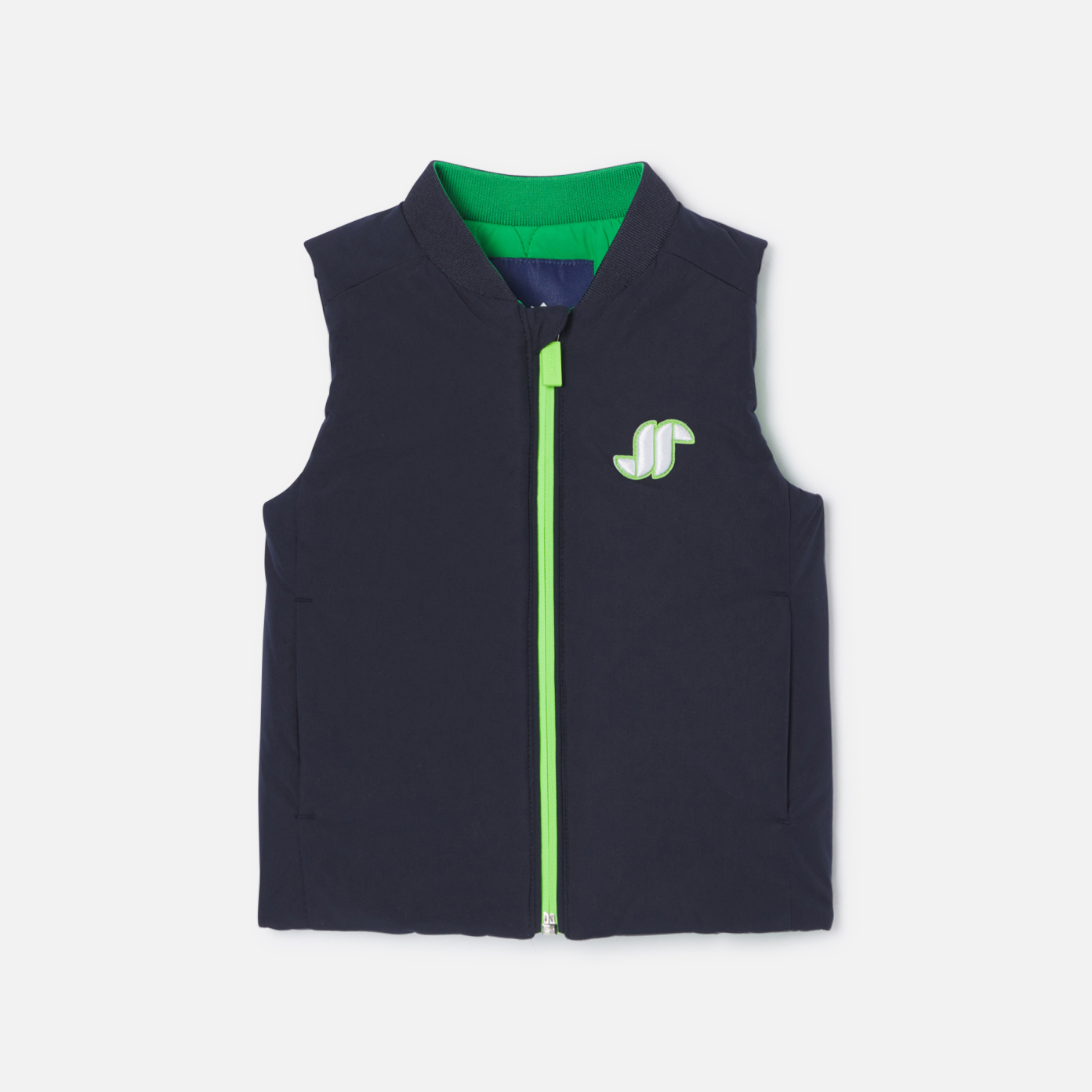 Sporty, chic and clever, the sleeveless baby boy down jacket kicks off the season in style. Made from water-repellent nylon with a zipped opening, your little boy can wear it navy or green for a variety of looks. Layered over a sweatshirt with beige trousers and trainers, the reversible down jacket confirms its status as a back-to-school wardrobe essential. - Lightweight down jacket - Water-repellent nylon - Badge on chest - Ribbed collar - Zip fastening