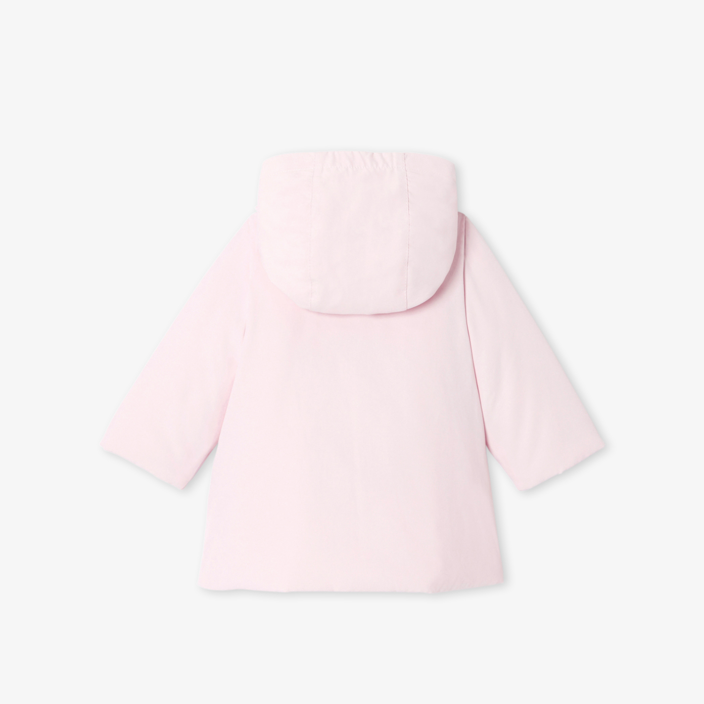 To give and to pass on, discover Jacadi unique know-how in this baby girl coat. Made from lined canvas, with a removable hood, Peter Pan collar, patch pockets and contrasting bias detailing, this mid season coat is a must-have. Worn over a t-shirt with jeans for a chic, Parisian look, it will be part of every outing.-Baby girl double-breasted coat-Canvas fabric-Peter Pan collar-Patch pockets with flap-Contrasting bias trim-Lining in plain poplin-Removable hood-Crossed fastening with lacquered snaps