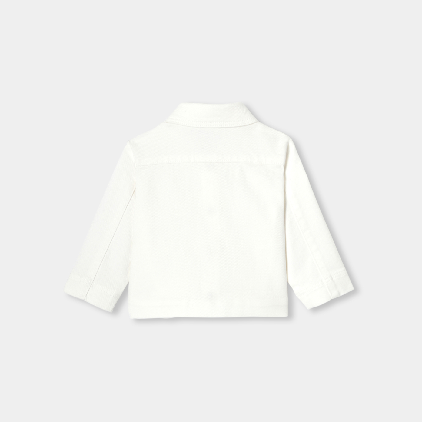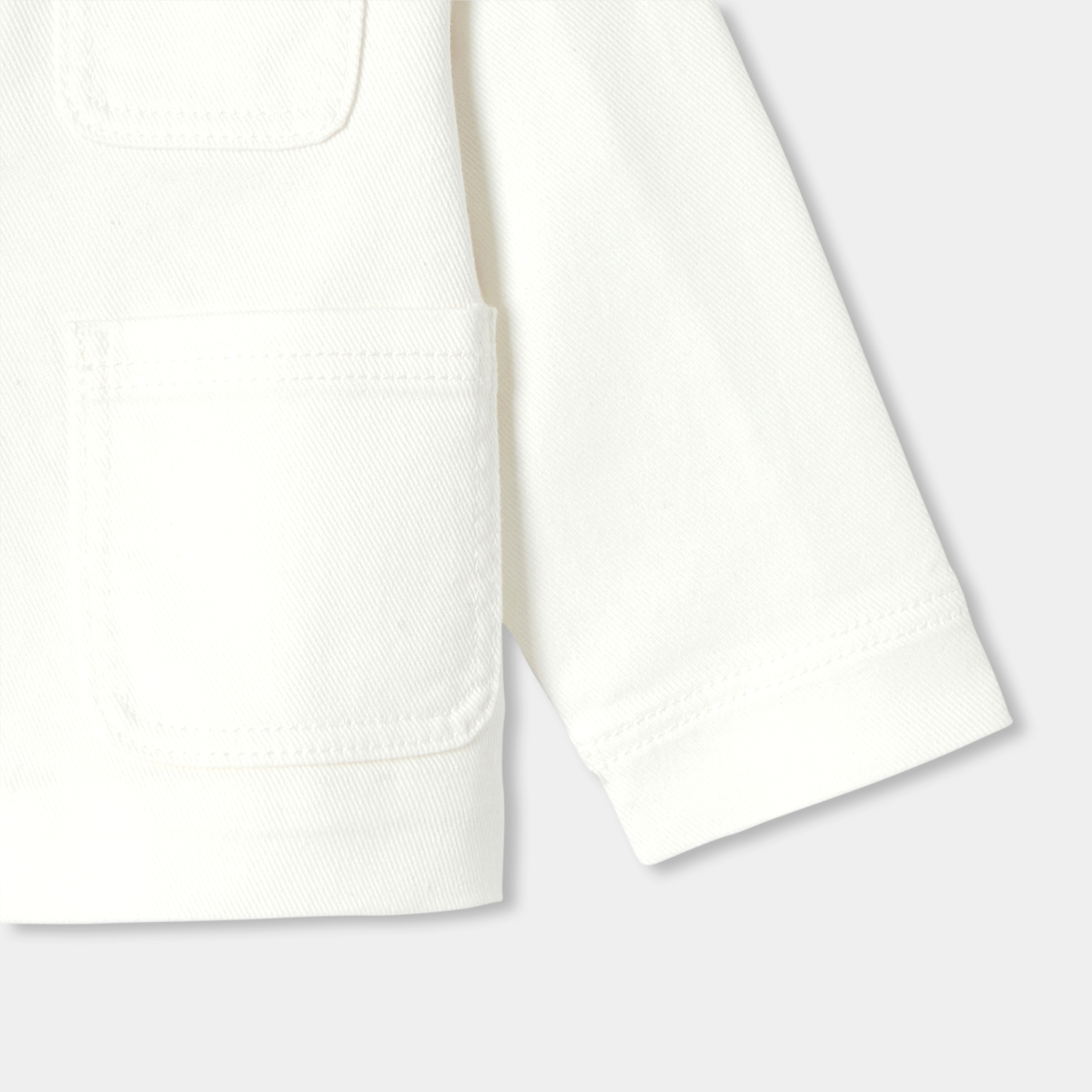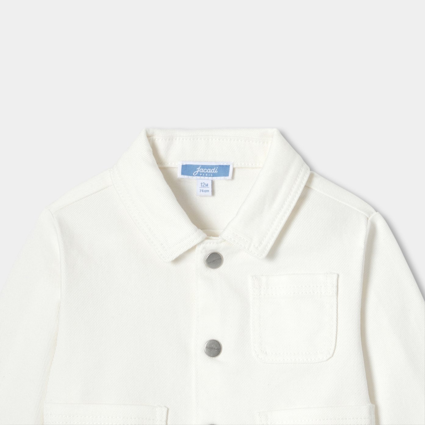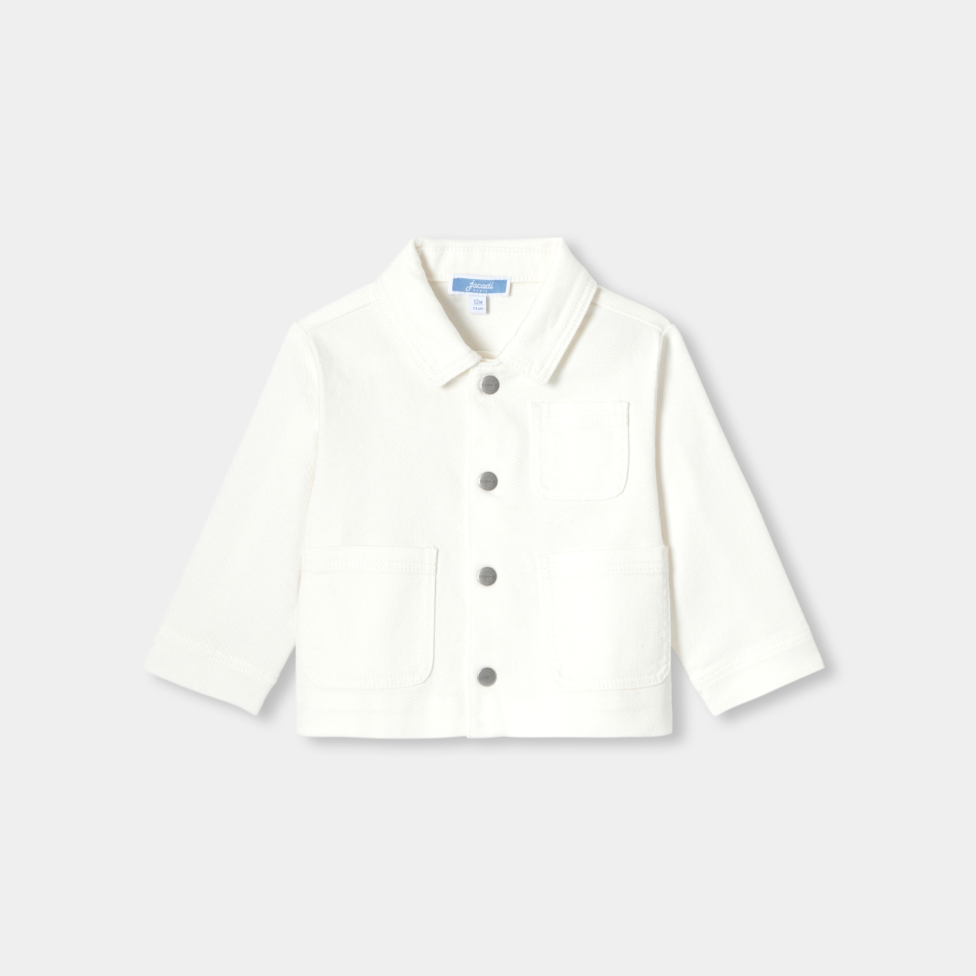 Inspired by the workwear wardrobe, this baby jacket adopts a contemporary look for spring. A versatile model that can be worn over a sweatshirt or a sailor suit for a very French look, it will be part of every outing.-Baby workwear jacket in organic cotton-Soft twill-Patch pockets-Snap closure