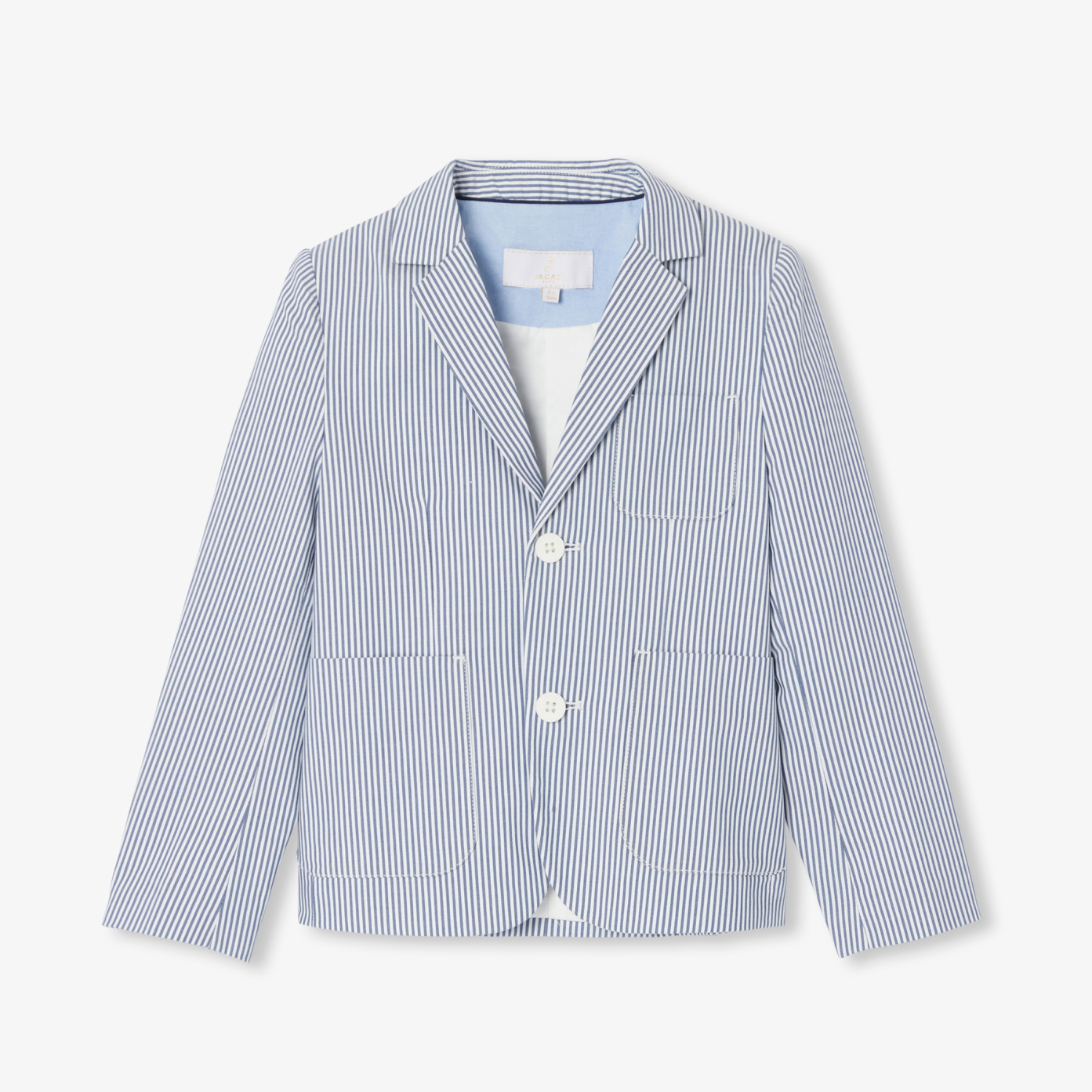 With its geometric look and impeccable cut, this jacket is perfect for any formal occasion. Worn with matching Bermuda shorts for a contemporary silhouette or paired with slack trousers, this elegant jacket strikes just the right balance between refinement and comfort.- Cotton- Cotton poplin lining- Button closure- Jacadi Paris ribbon detail inside