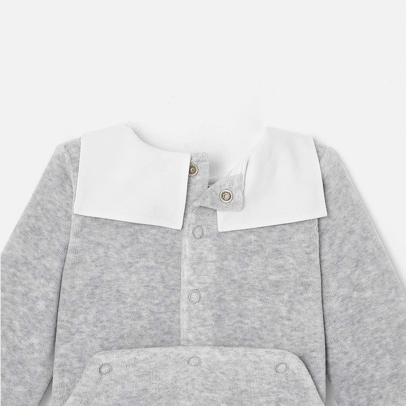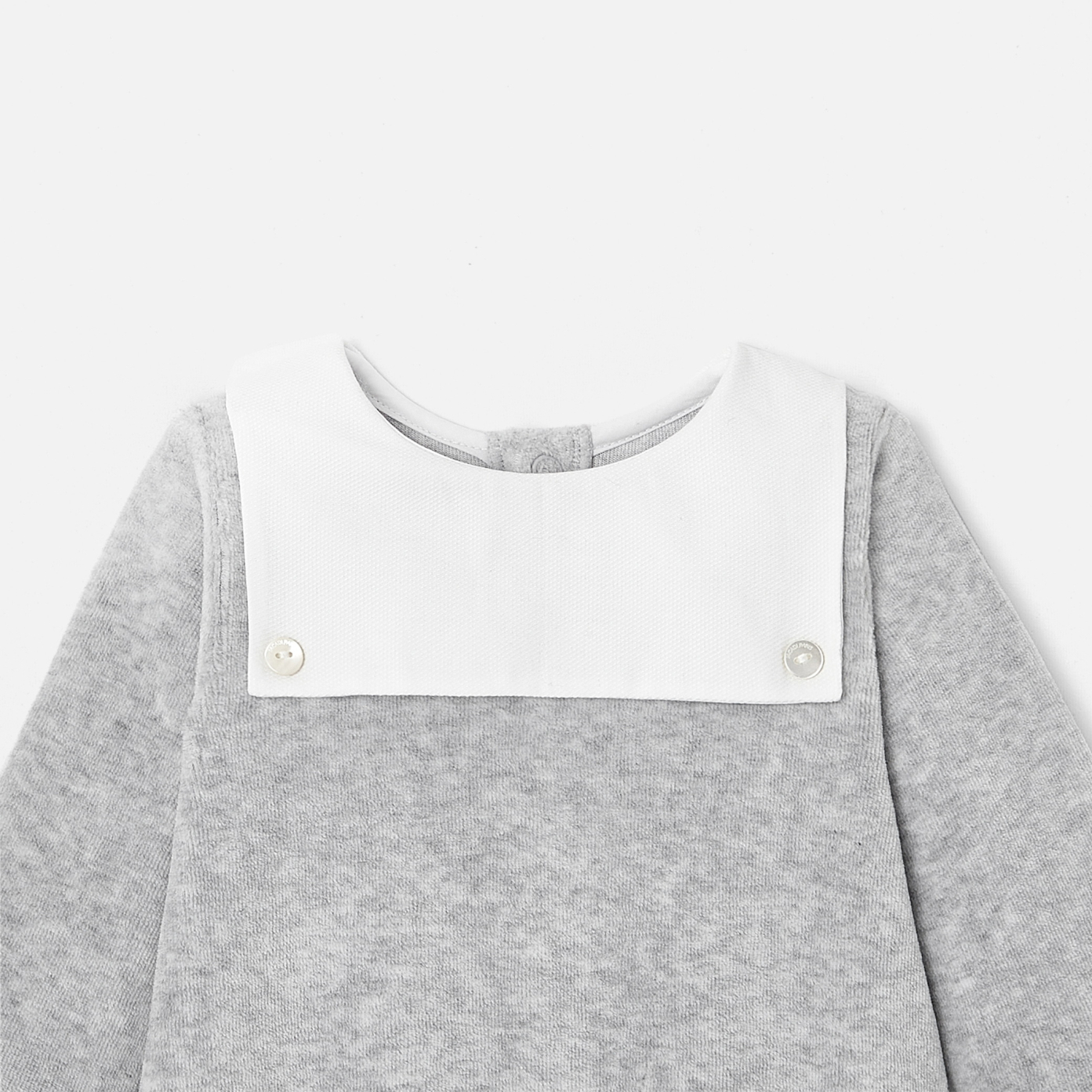 Emblematic of the Jacadi wardrobe, these baby pyjamas inspired by the house archives will dress baby with softness and elegance. Ideal as part of a hospital bag, they are a great birth gift to give or to treat yourself to accompany your newborn's first days. - Organic cotton baby pyjamas - Soft velvet - Cotton piqué collar - Natural mother-of-pearl decorative buttons - Back snap opening
