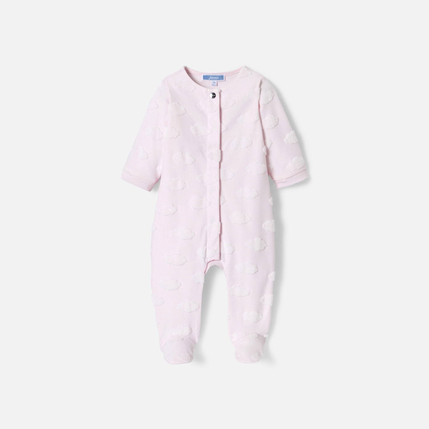 Soft pink and animated with clouds, these baby girl pyjamas in organic cotton are a great birth gift idea. Made from jersey, they open at the front with invisible snaps for easy, secure dressing.- Organic cotton baby girl pyjamas- Cloud motif- Snaps open at the front- Ideal for making up a hospital bag.