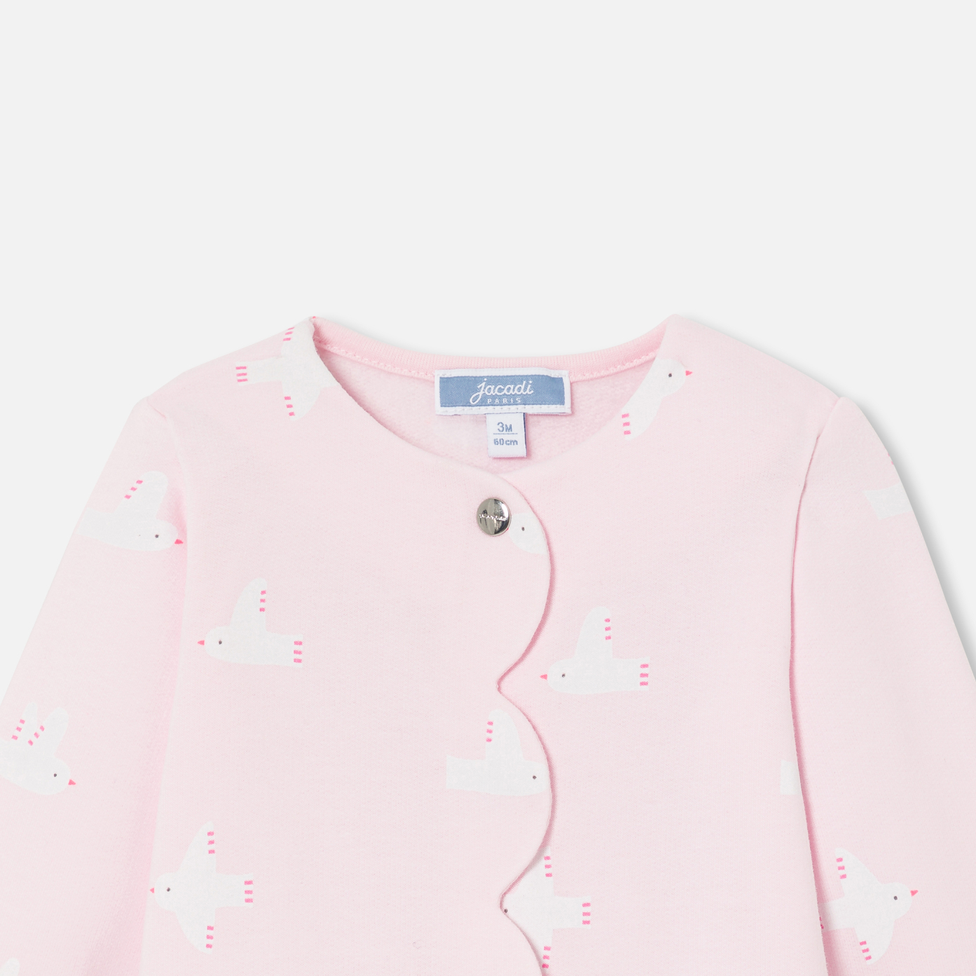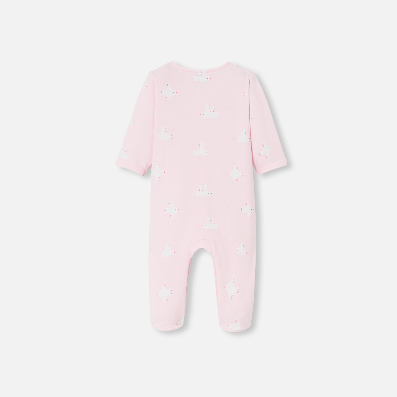 Welcome baby to the comforting softness of these pyjamas made from organic cotton fleece with an interior with a brushed finish. Decorated with seagulls and beautifully scalloped, these birth essentials feature a front opening for easy and secure dressing and will wrap baby in comfort as she sleeps.- Organic cotton sleepsuit- Invisible press studs at front and crotch- Birth gift idea