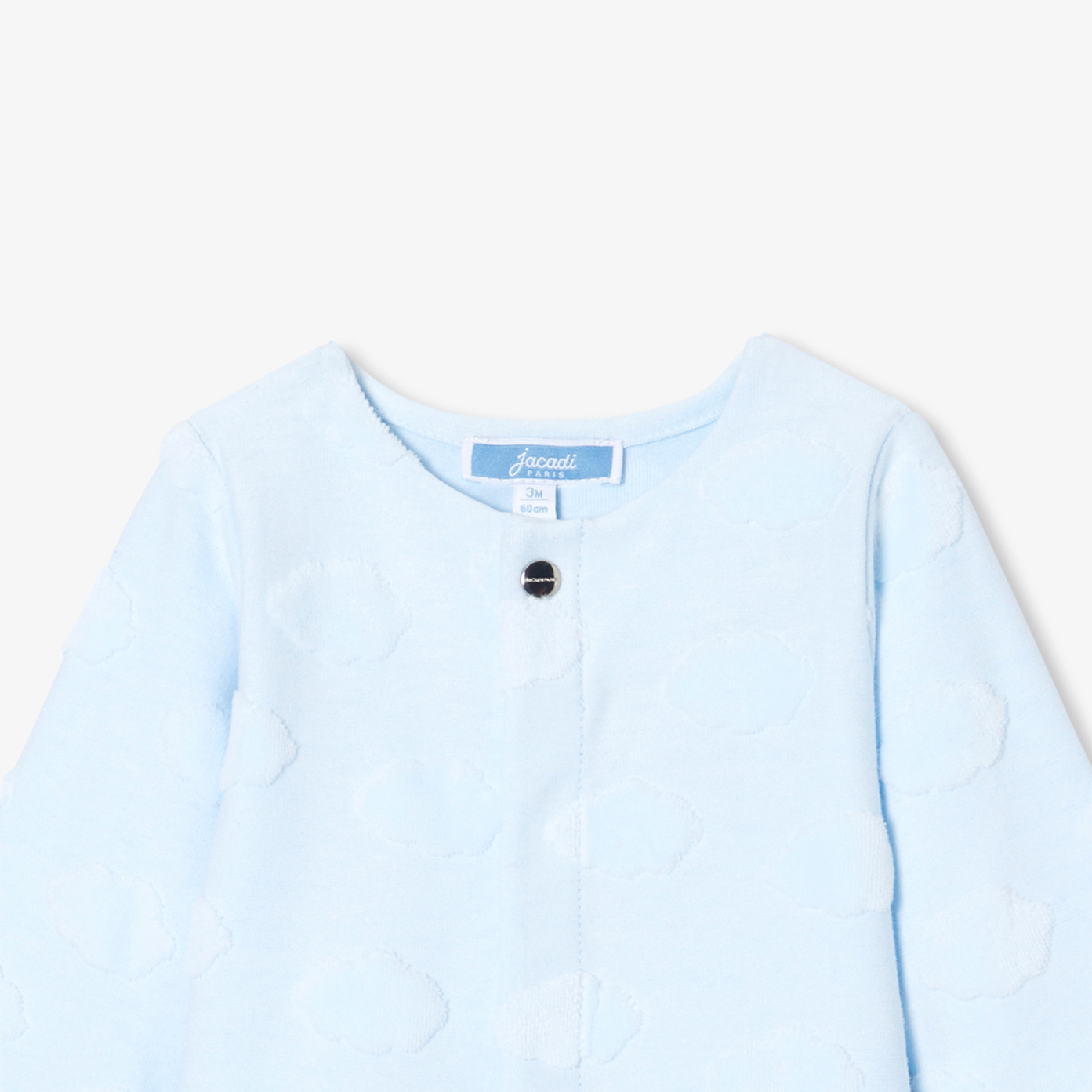 Made from soft, supple organic cotton, these baby boy pyjamas feature tonal clouds. Opening at the front for easy, secure dressing and changing, they are a great idea for a birth gift.-Organic cotton baby boy pyjamas-Cloud motif-Snap front opening-Ideal for the hospital bag