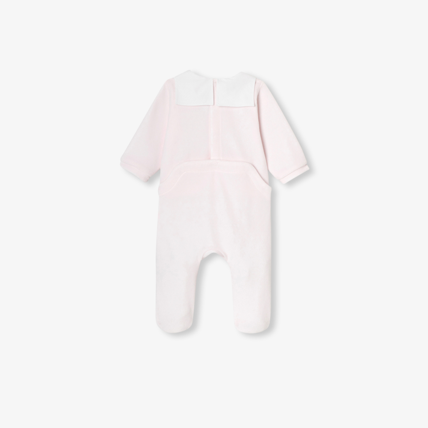 A first trousseau placed under the sign of elegance with these baby girl pyjamas in warm velvet. Embellished with a poplin sailor collar hand-embroidered with a little teddy bears, this chic, supple model is easy to put on thanks to its invisible press studs on the back and is a great idea for a birth gift.- Velvet pyjamas- Cotton poplin sailor collar- Hand-embroidered teddy bear- Back opening with invisible press studs.