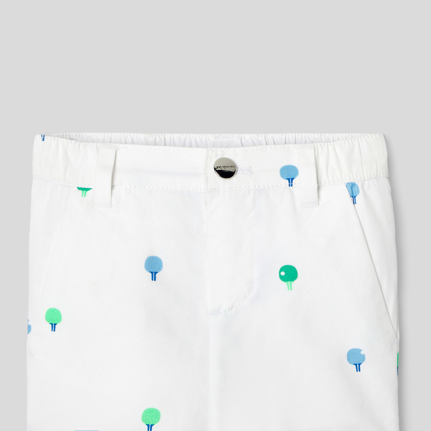 Modern and playful, these baby boy's shorts are printed with rackets. Made with gabardine cotton and featuring an adjustable waistband from the inside, pair them with a t-shirt or polo shirt for summer.- Organic cotton- Elastic waistband with zip and snap opening- Tennis racket print- Italian pockets- Piped pocket on back