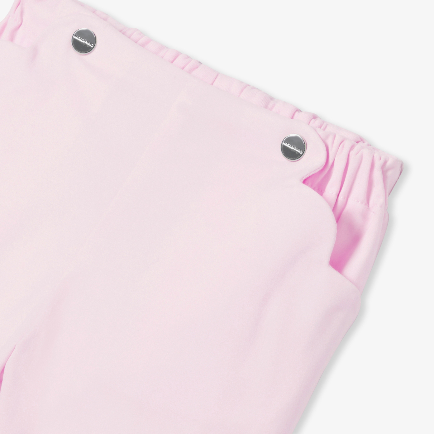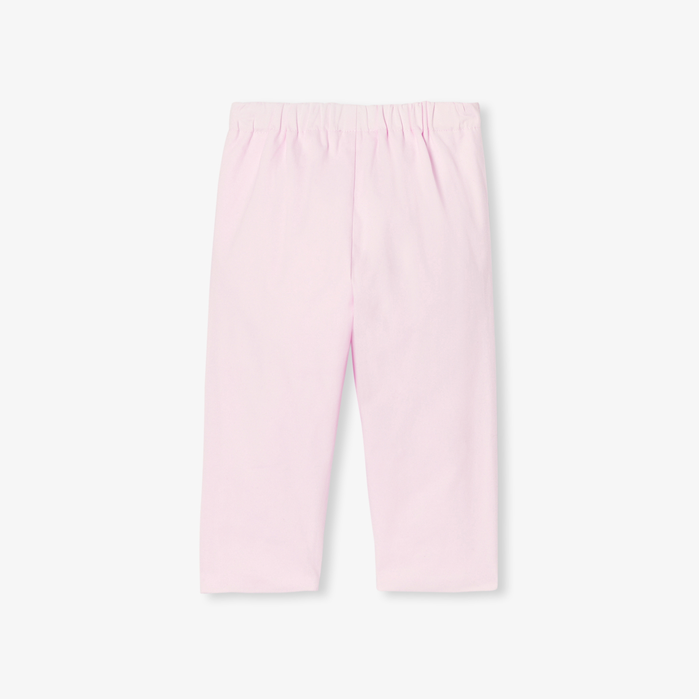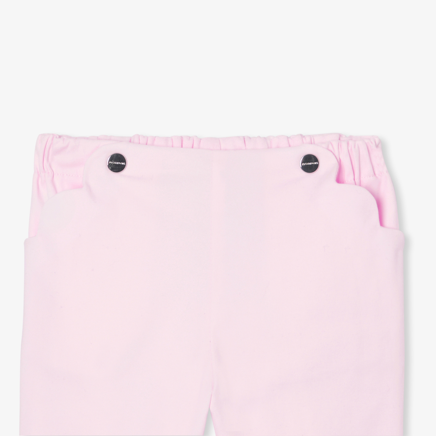 Everyday casual chic with these baby girl trousers. Accessorised with scalloped pockets and decorative tab-style press studs, this t-shirt and printed blouse will go beautifully with this spring wardrobe essential.-Baby girl organic cotton trousers-Scalloped pockets-Decorative tab-style press studs-Elasticated waist adjustable from the inside