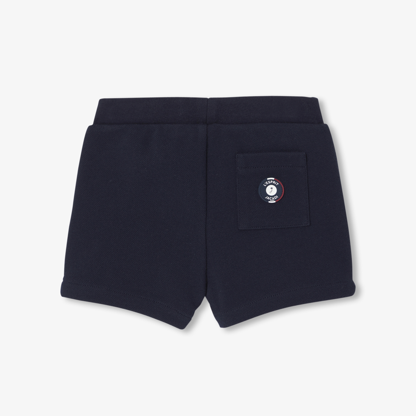 A wardrobe essential that is easy to match, baby boy shorts seduce with their versatility. Casual and sporty with their piqué knit and elasticated waistband, pair them with the matching zipped jacket for the start of the season with a polo shirt and trainers.-Baby boy shorts in cotton pique knit-Elasticated waistband-Patch pocket on back with Jacadi badge