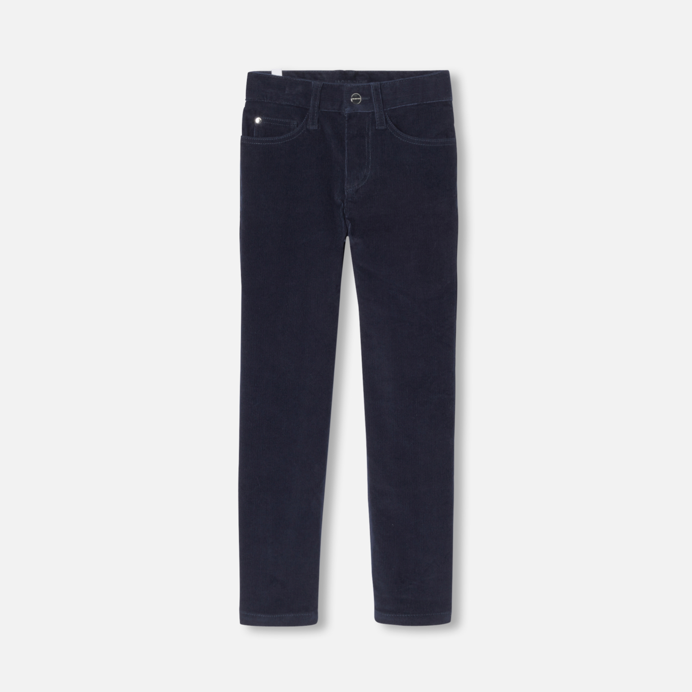 This season, straight-cut trousers are available in soft, supple velvet. Available in timeless colours, these rugged, all-purpose trousers can easily be paired with a polo shirt or sweatshirt for everyday wear.- Soft, supple velvet trousers- Regular cut- Adjustable waist- Zip and button opening- Straight cut